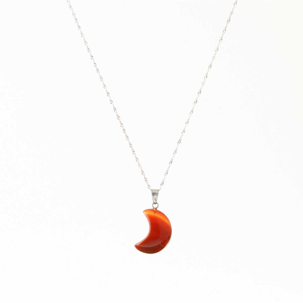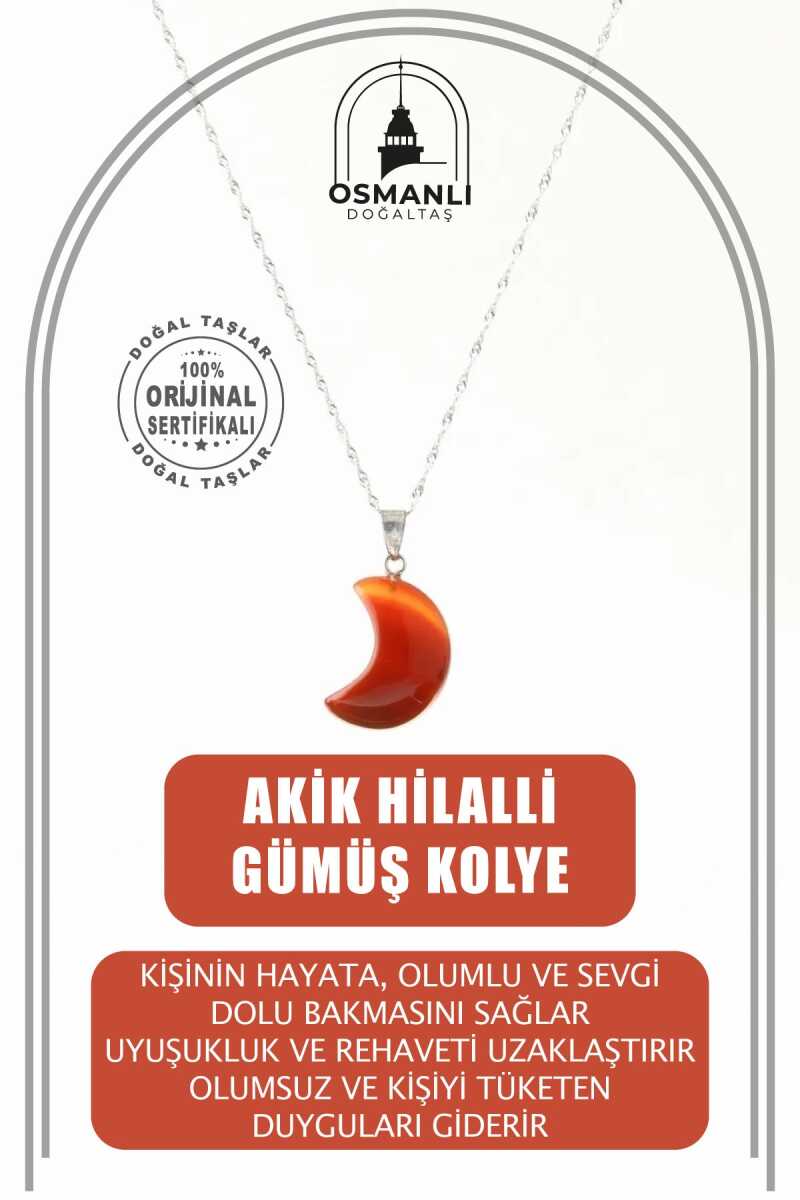 Akik Doğal Taş Hilalli Kolye, Gümüş Zincir