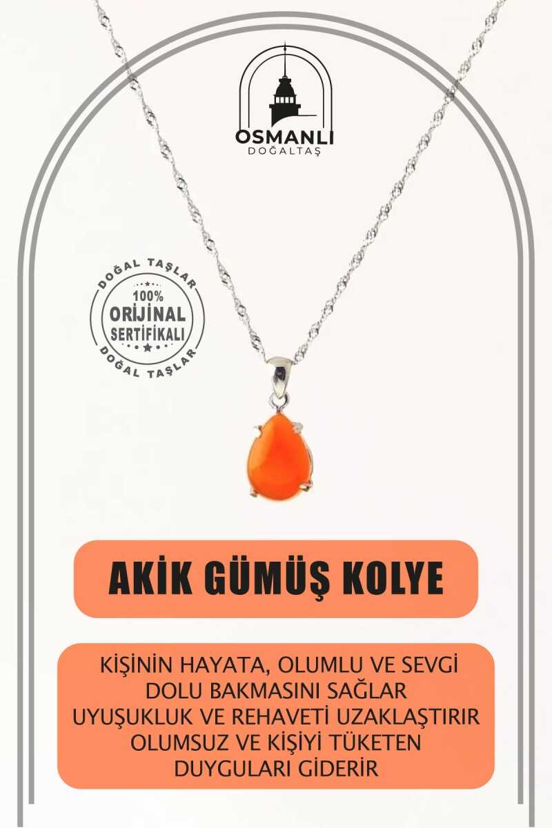 Akik Doğal Taş Kolye, Gümüş Zincir