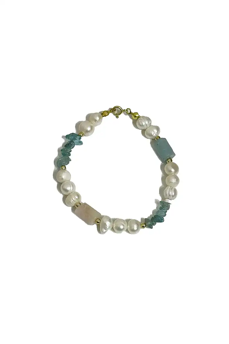 Akuamarin İnci Apatit Ay Taşı Gümüş Kapama Bileklik Doğal Taş Bileklik