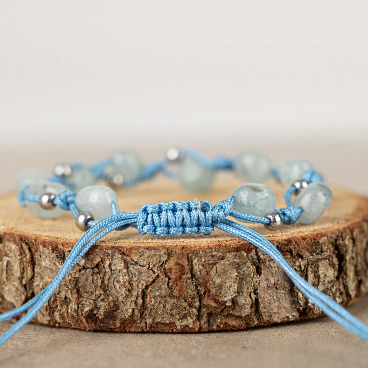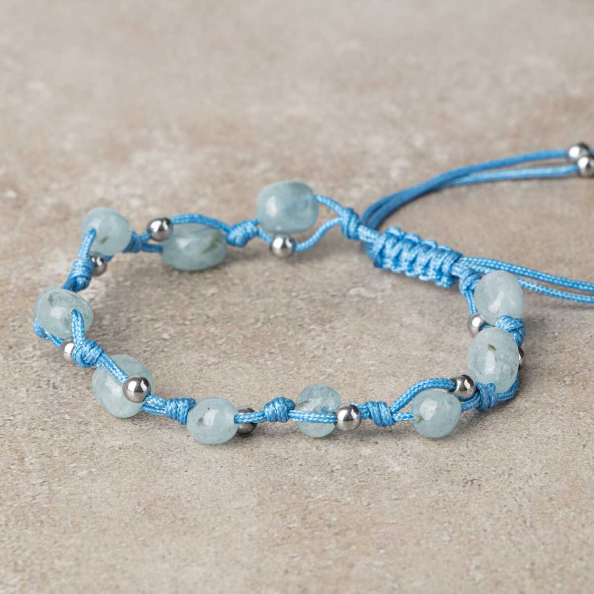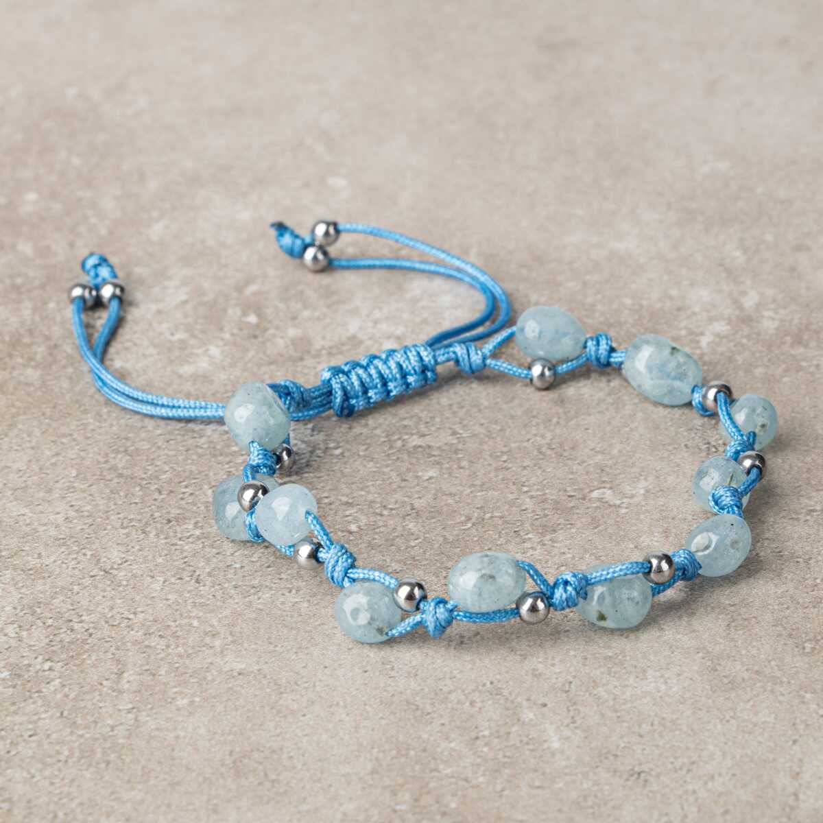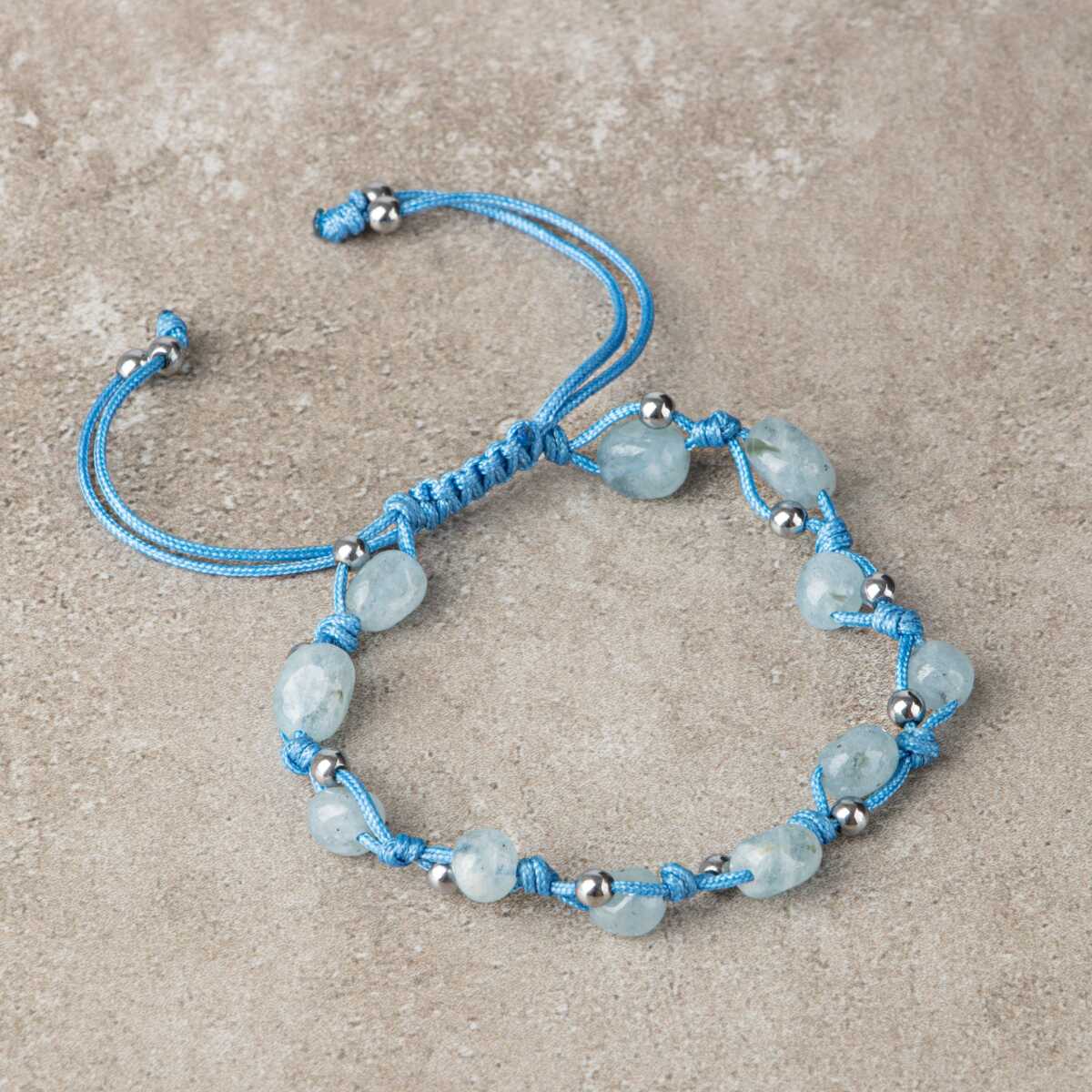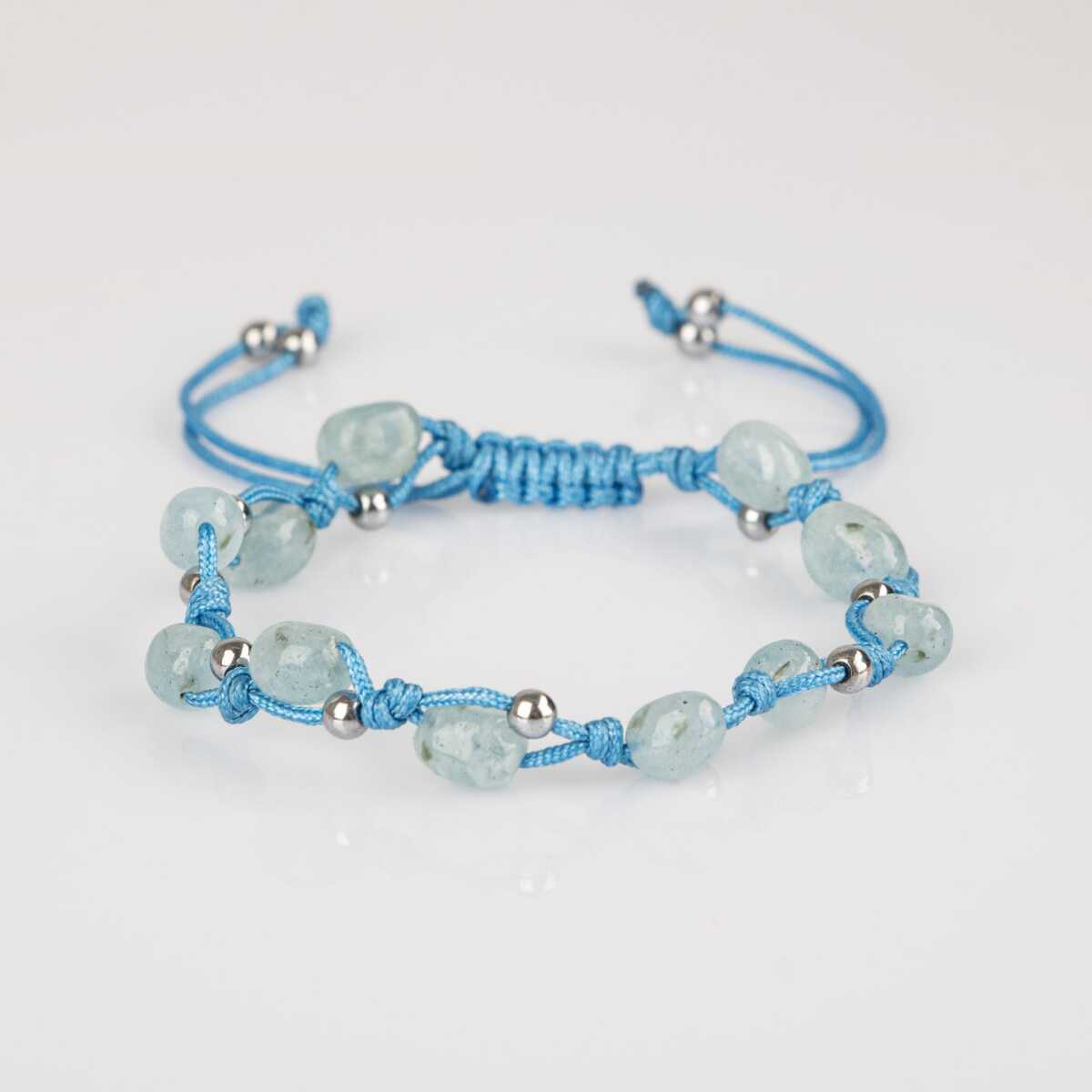 Akuamarin Natürel Kesim Doğal Taş Makrome Bileklik