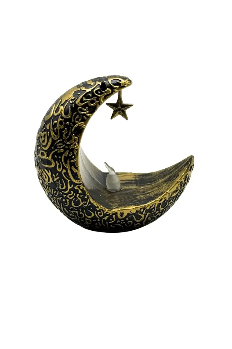 Gümüş Rengi Ay Yıldız Figürlü Pilli Işıklı Masaüstü Dekoratif Süs