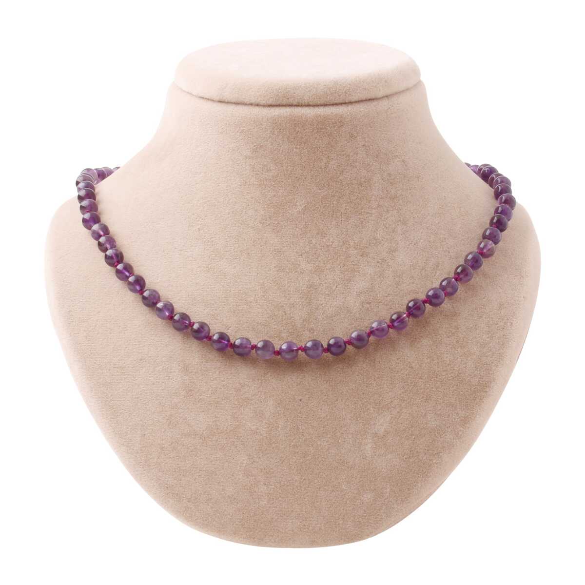 Ametist 6 mm Düğümlü Doğal Taş Kolye
