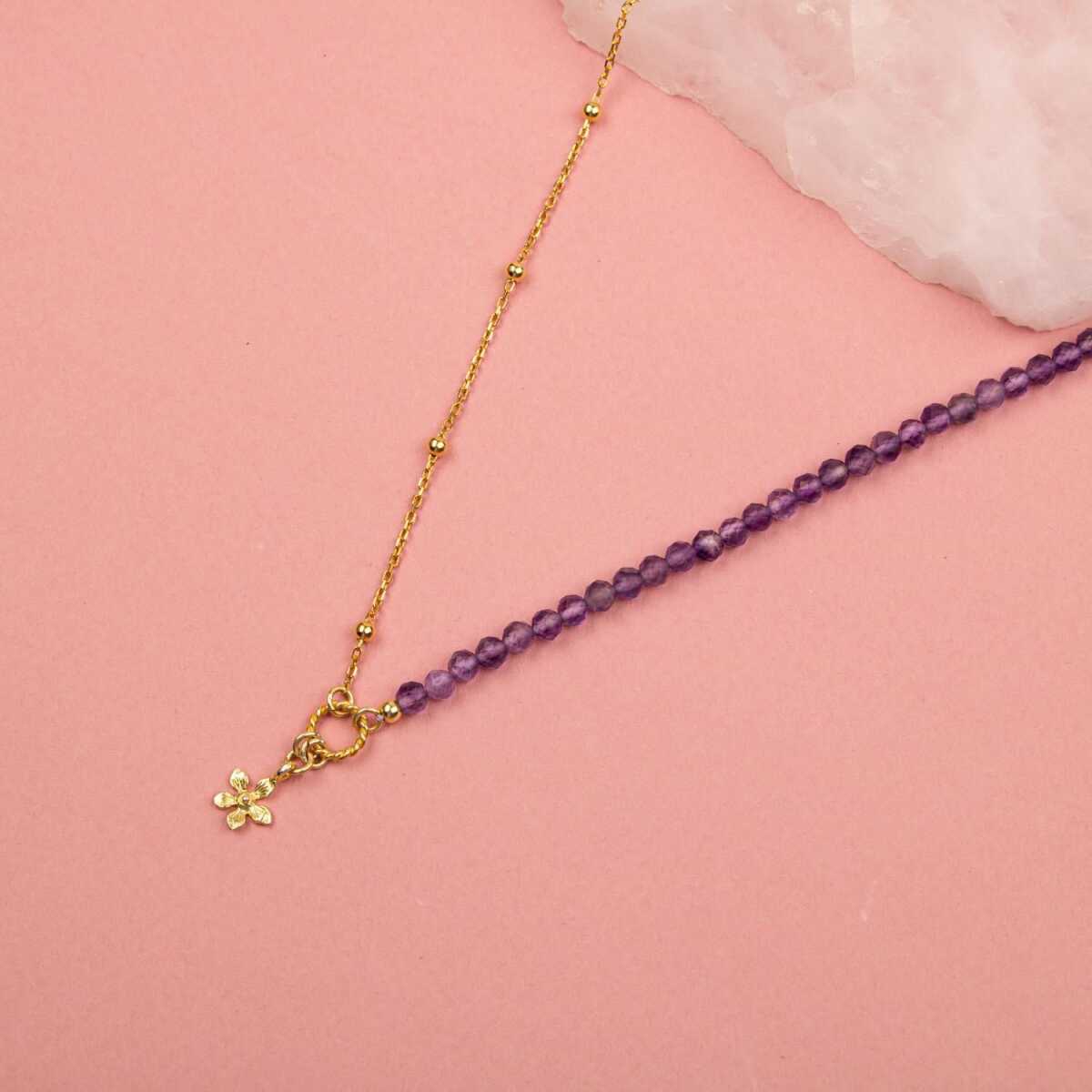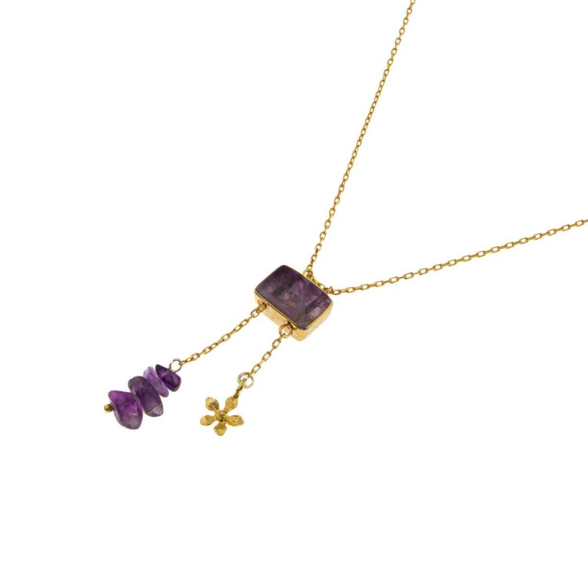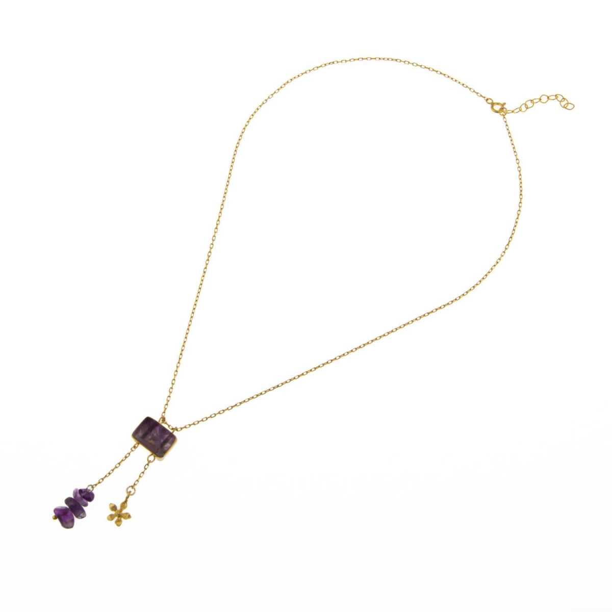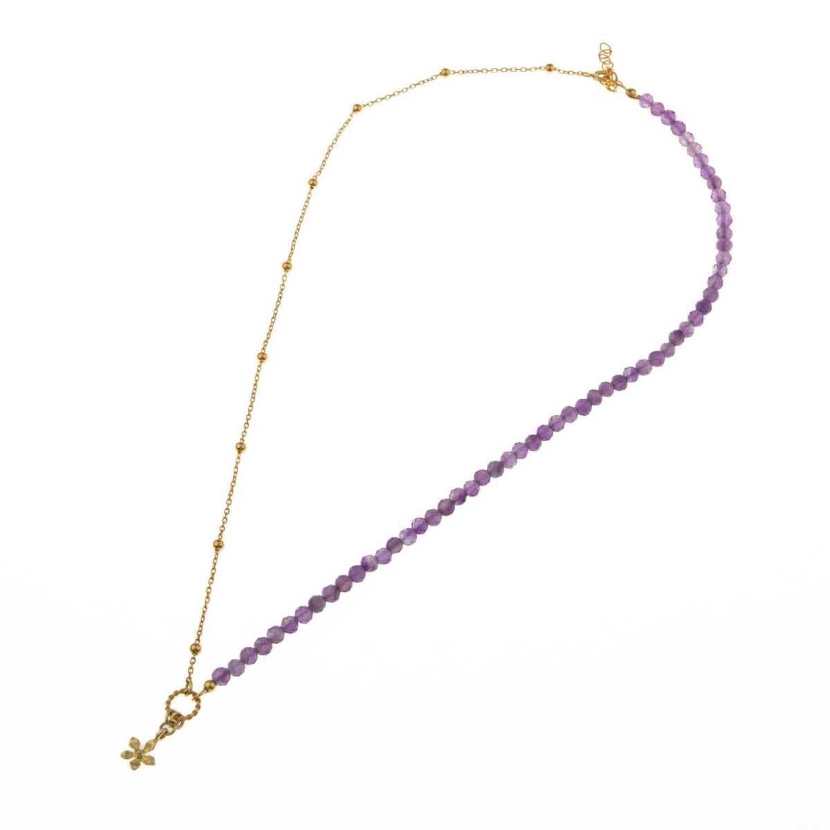 Ametist Doğal Taş Gümüş Çiçekli Kolye