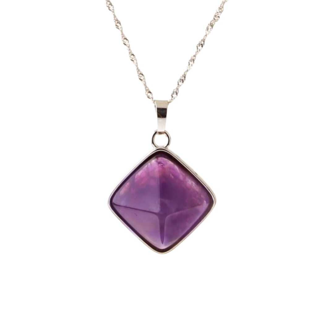 Ametist Doğal Taş Kolye, Gümüş Zincir
