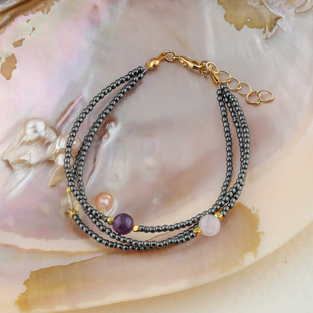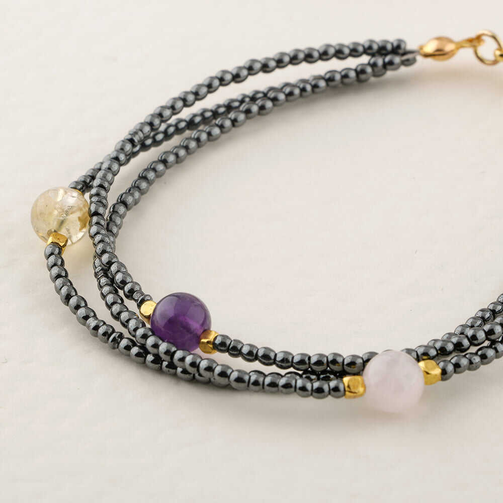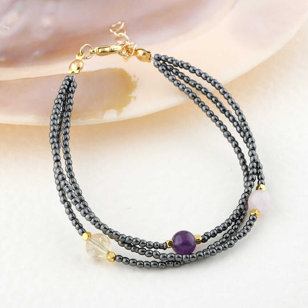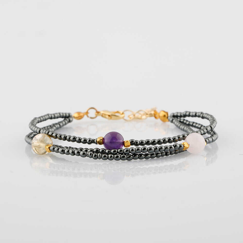 Ametist-Sitrin-Ay Taşı-Hematit Doğal Taş Altın Kaplama Kapama Bileklik