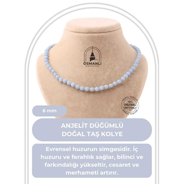 Anjelit 6 mm Düğümlü Doğal Taş Kolye