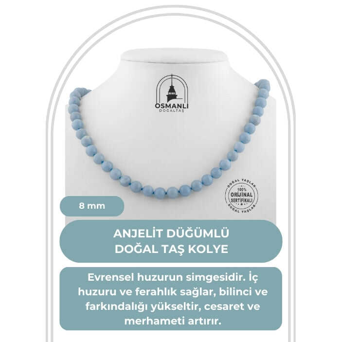 Anjelit 8 mm Düğümlü Doğal Taş Kolye