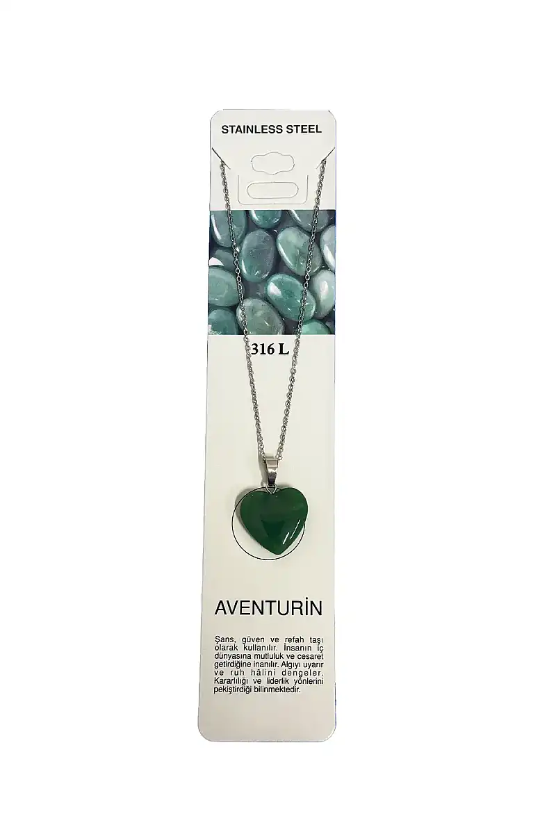 Aventurin Kalp Figür Taşlı Çelik Zincir Doğal Taş Kolye