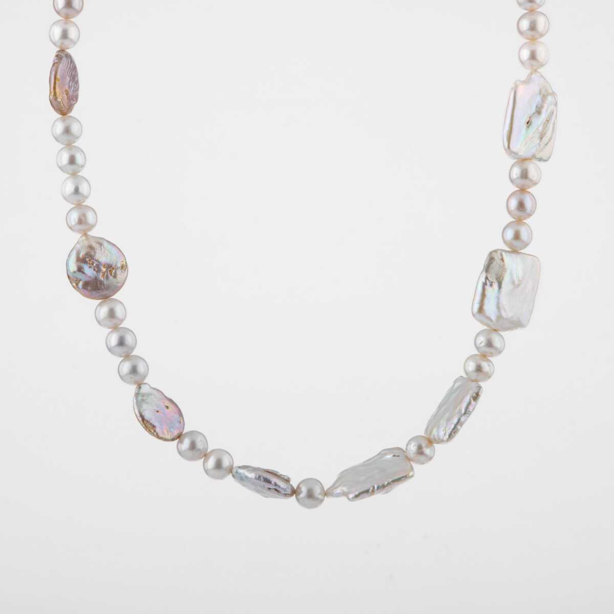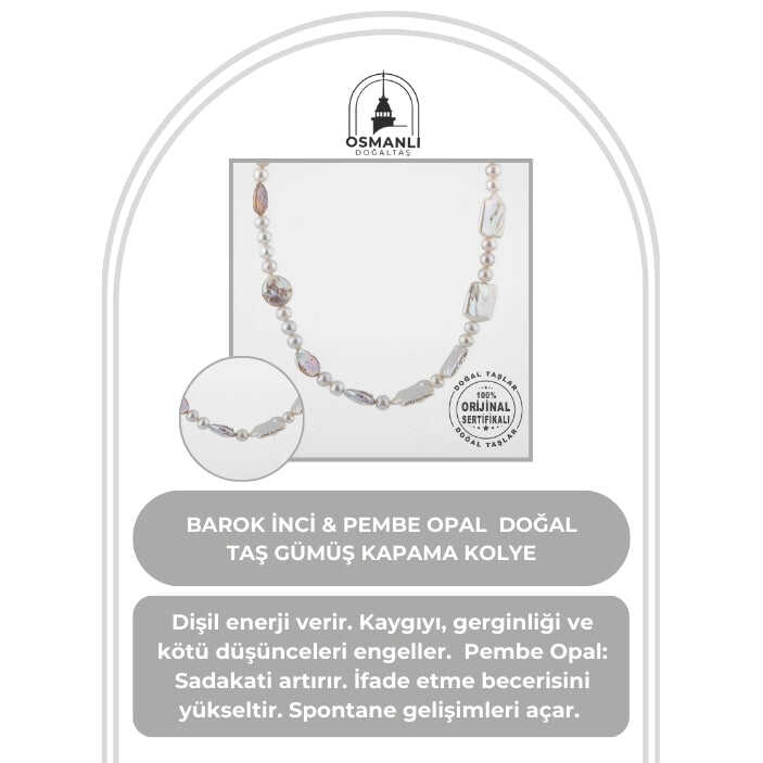Barok İnci Doğal Taş Gümüş Kapama Kolye - 54cm