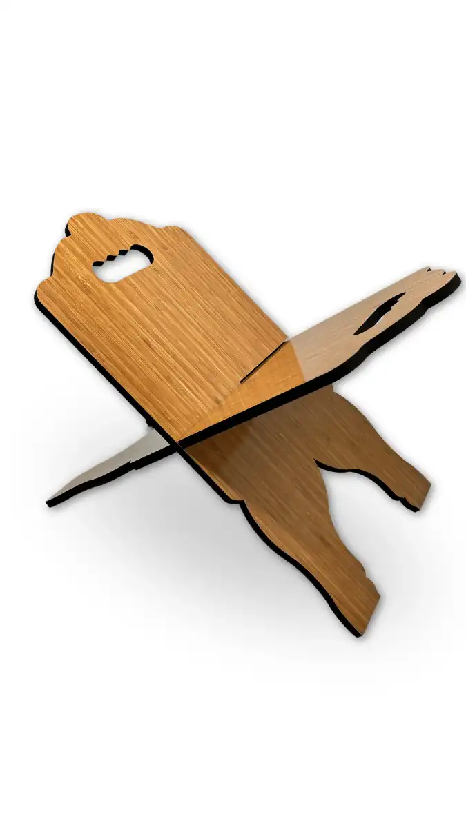 İç içe 2 parça malzemeden oluşur ve parçaları birbirine geçmelidir.birleştirdiğiniz zaman rahle ortaya çıkmaktadır.geçmeli olduğu için kullanımı kolaydır ve yer kaplamaz.Lazer kesim tekniğiyle üretilmiştir.8mm 1.sınıf MDF den üretilmiştir.