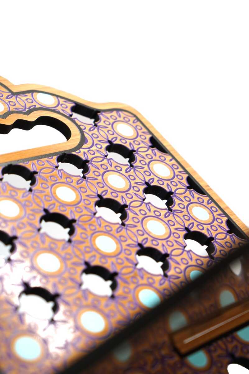 Lazer Kesim tekniğiyle üretilmiştir. Üzerine uv baskı uygulanmıştır.