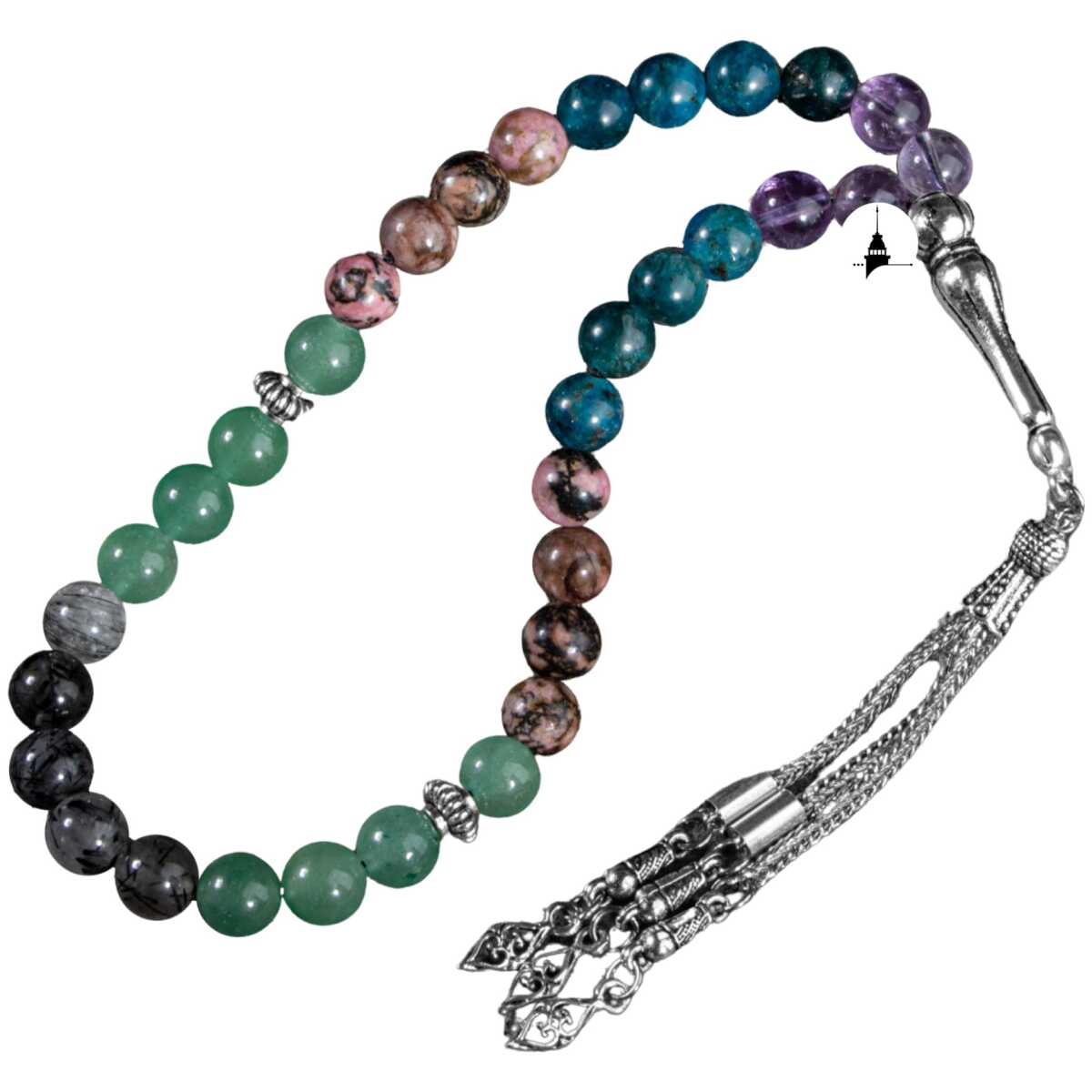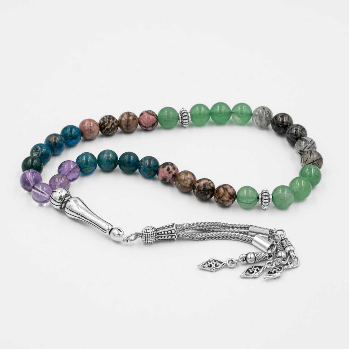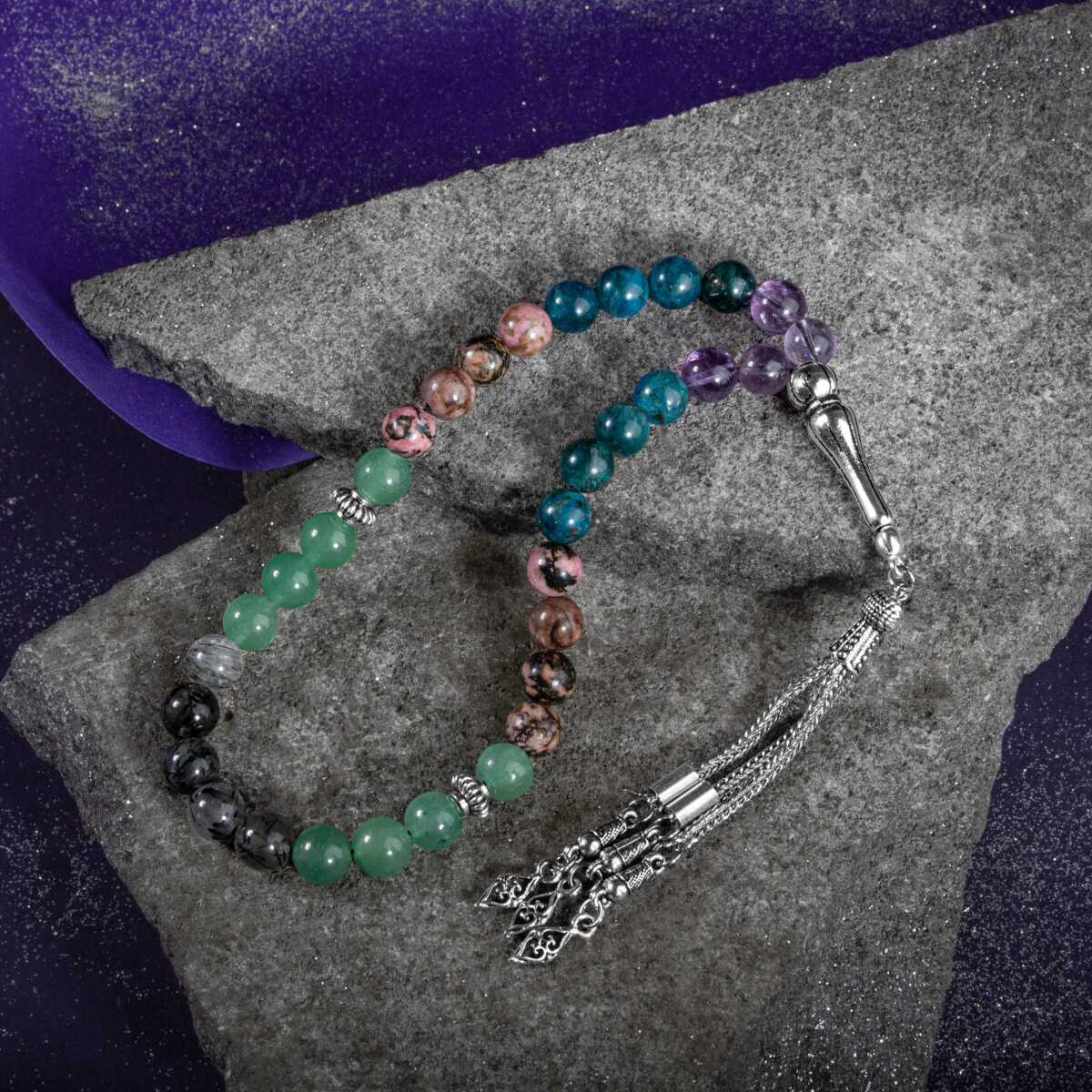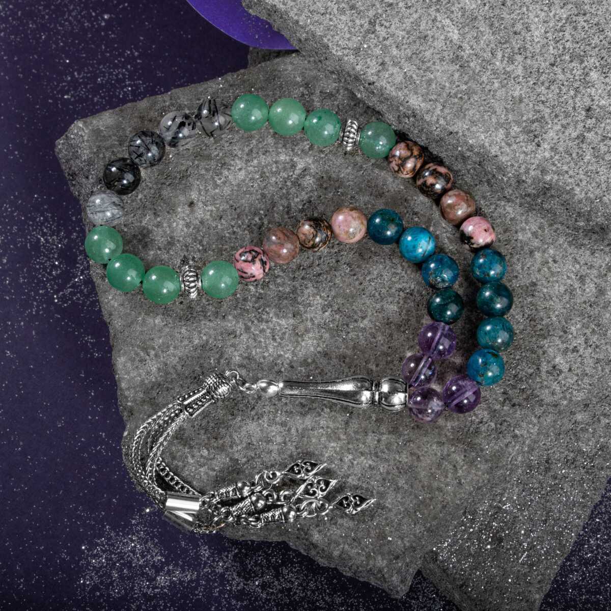 Boğa Burcu Tesbih Ametrin, Mavi Apatit, Rodonit, Rutilli Kuvars, Yeşil Aventurin