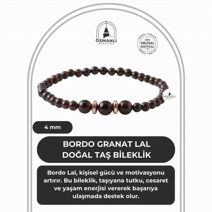 Bordo Granat Lal 4mm Doğal Taş Bileklik