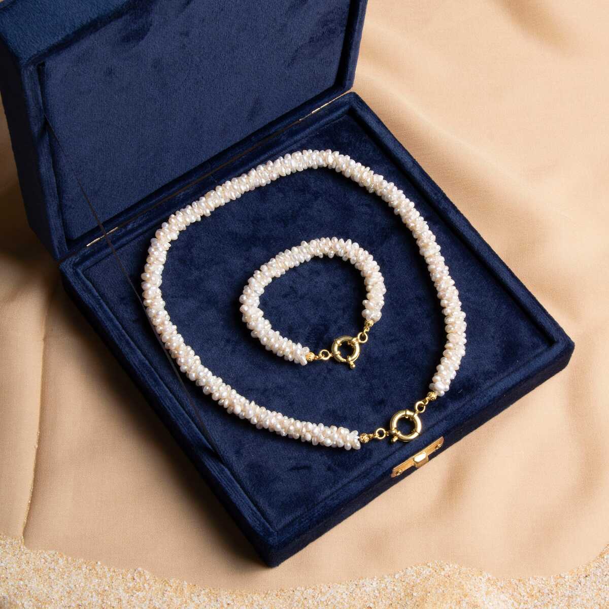 Sertifikalı İnci Doğal Taş Kolye Küpe Set