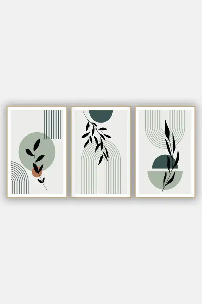 Set İçeriği: 3 adet tablo (minimalist yaprak desenli tasarımlar)