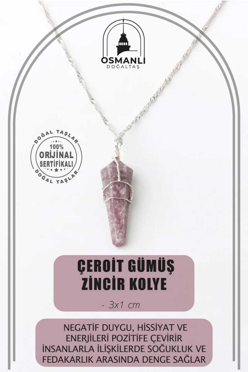 Çeroit Doğal Taş Kolye Ucu 3x1 cm, Gümüş Zincir