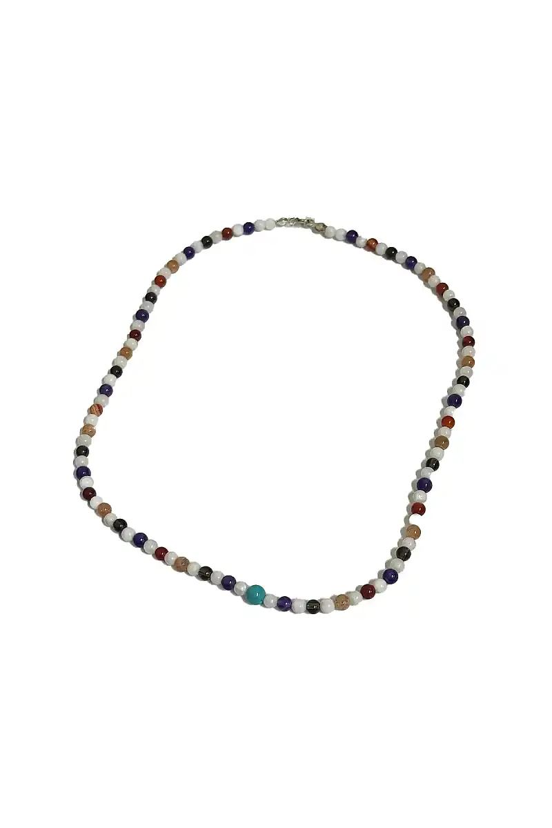 Dumanlı Kuvars Turkuaz Ay Taşı Ametsit Güneş Taşı Akik Kolye 4 mm Doğal Taş Kolye