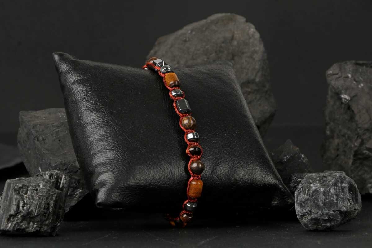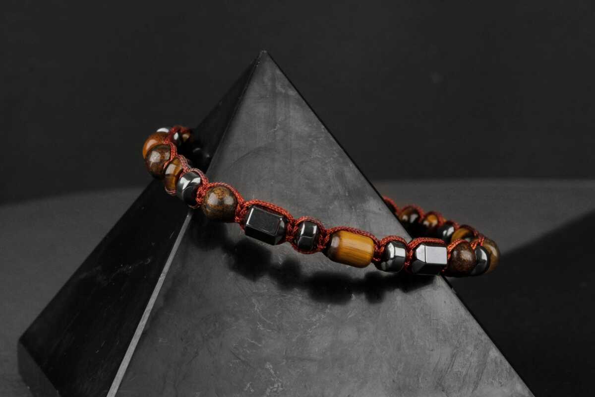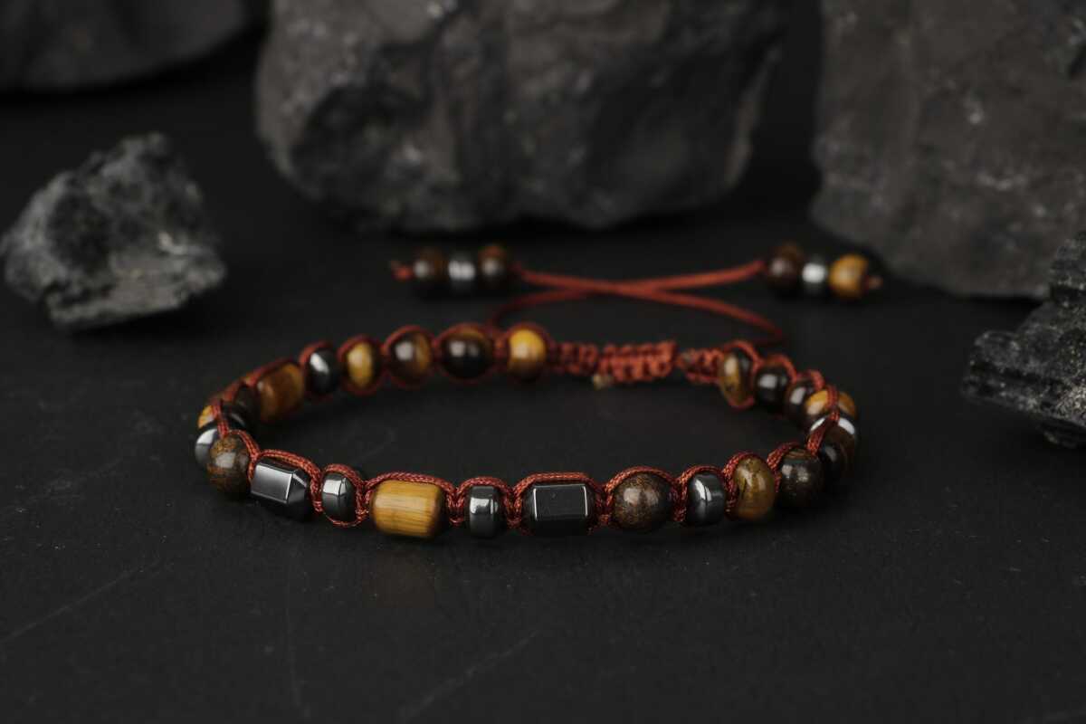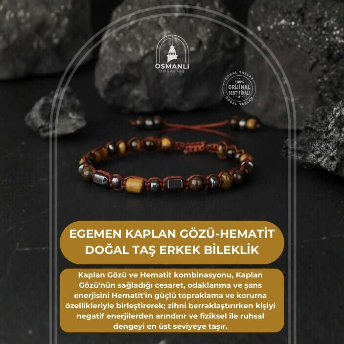 Egemen Kaplan Gözü-Hematit Doğal Taş Erkek Bileklik