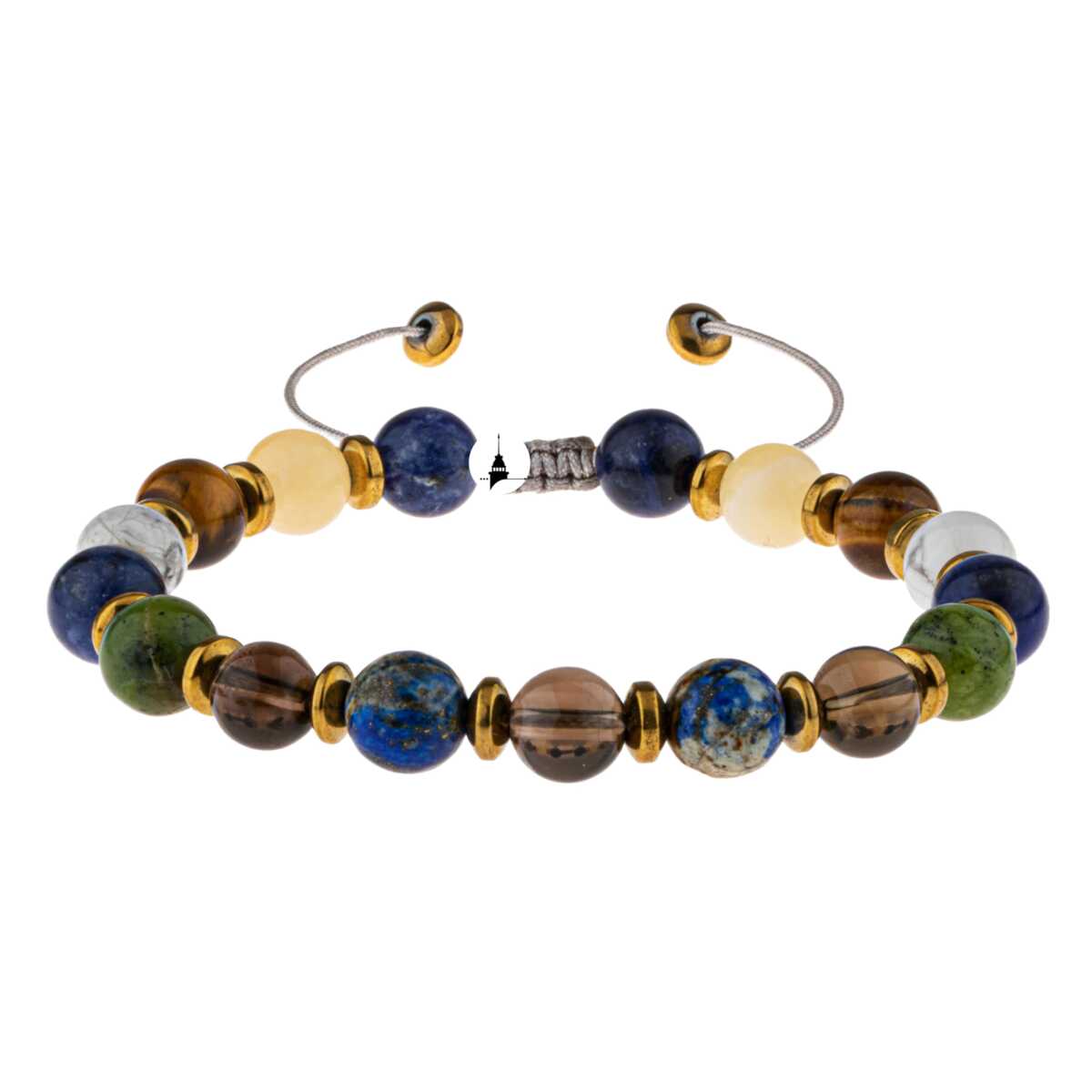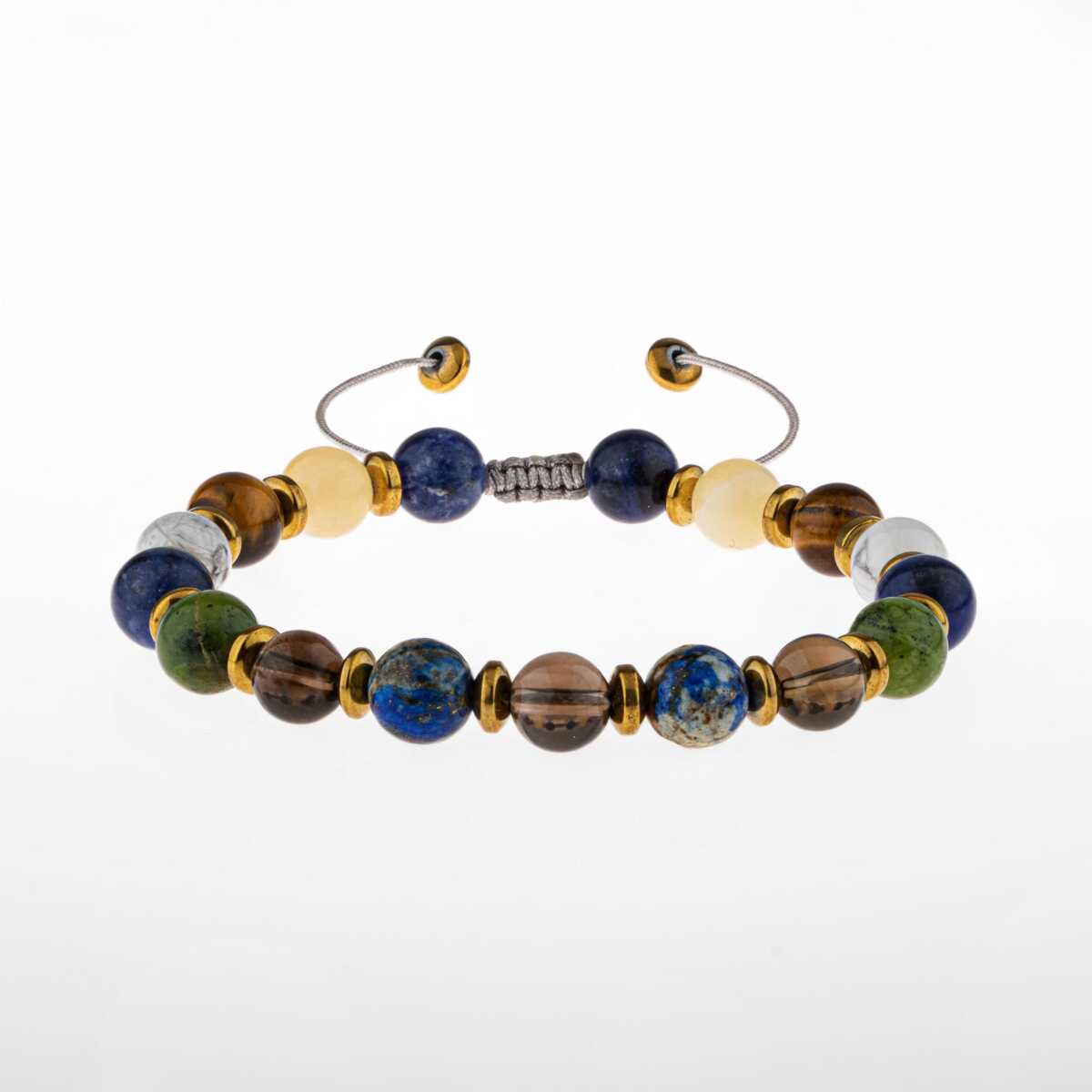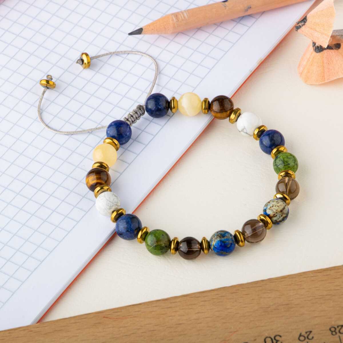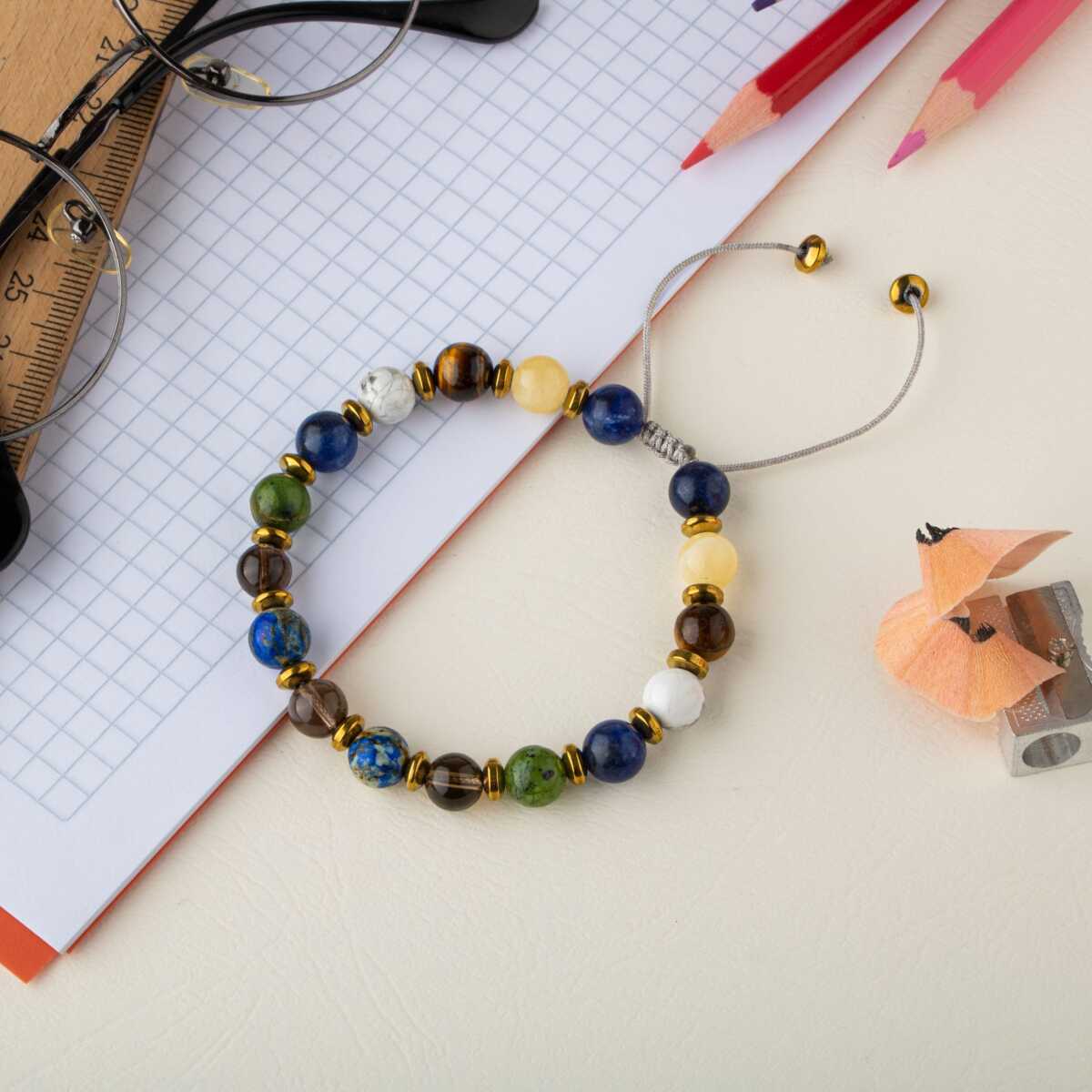Erkek Öğrenci Doğal Taş Bileklik-Sodalit-Kalsit-Kaplan Gözü-Havlit-Yeşim-Dumanlı Kuvars-Lapis Lazuli-Hematit