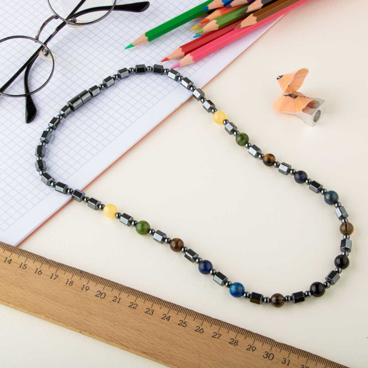Erkek Öğrenci Hematit Doğal Taş Kolye