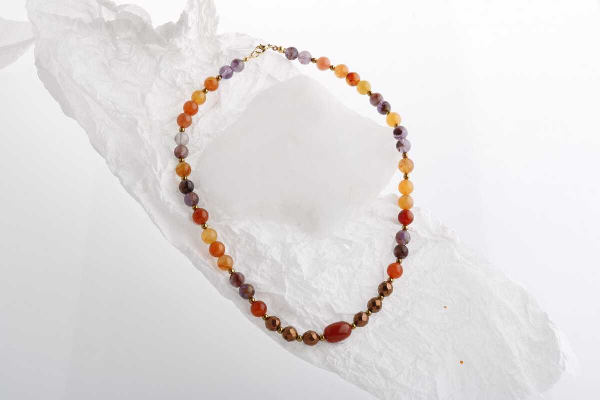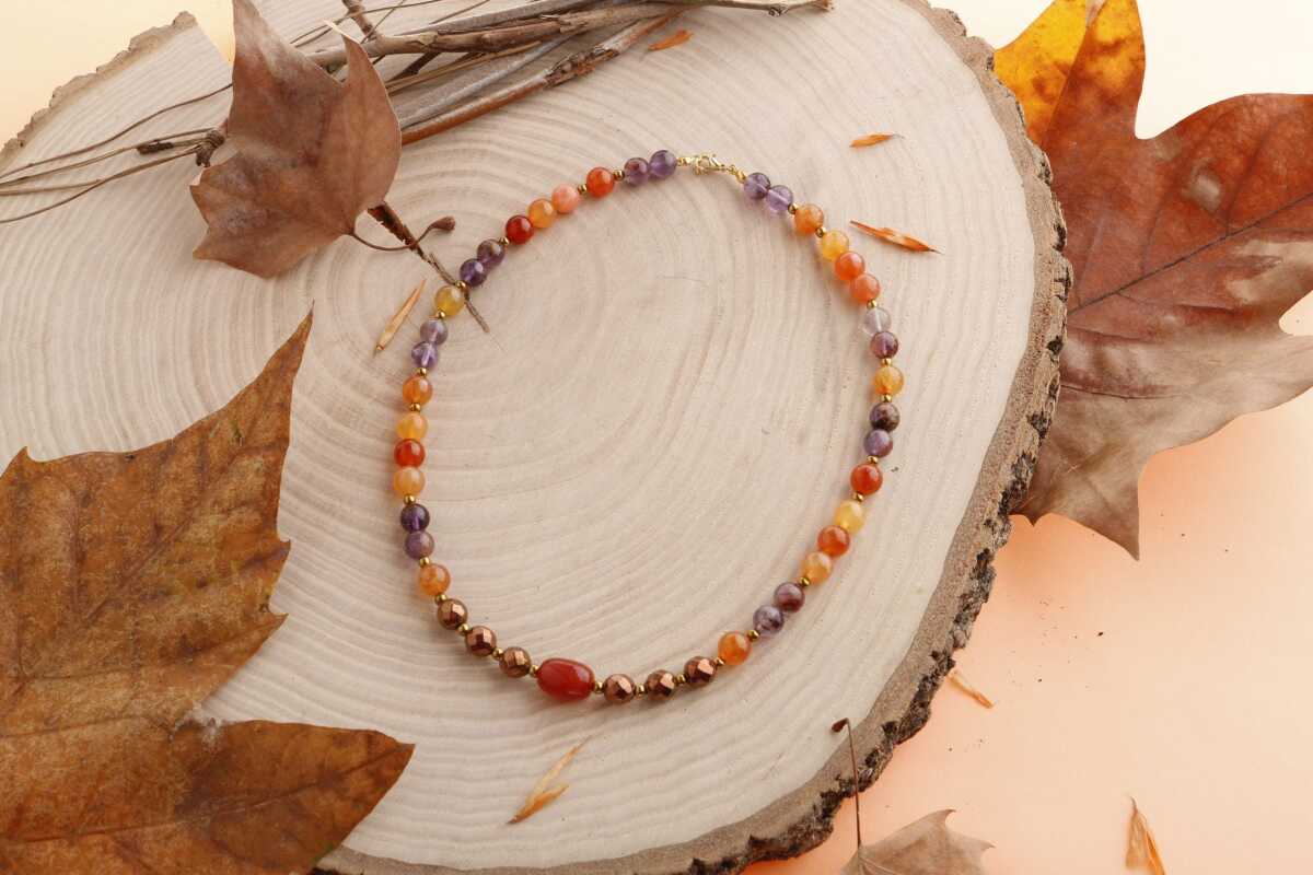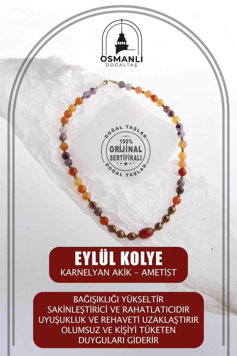Eylül, Karnelyan Akik Ametist Doğal Taş Kolye