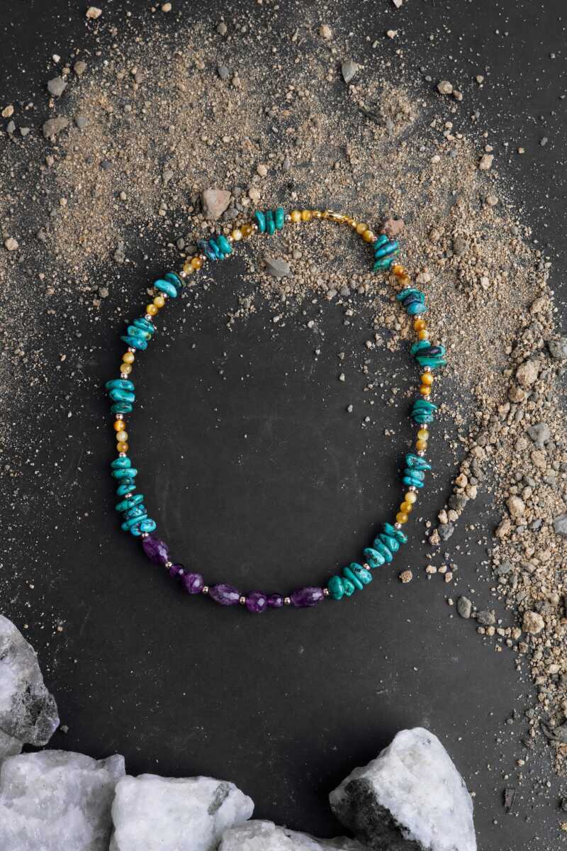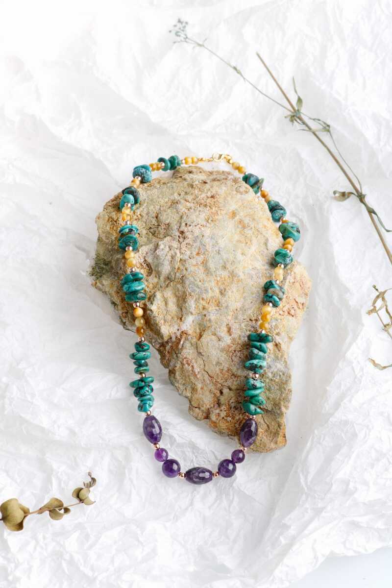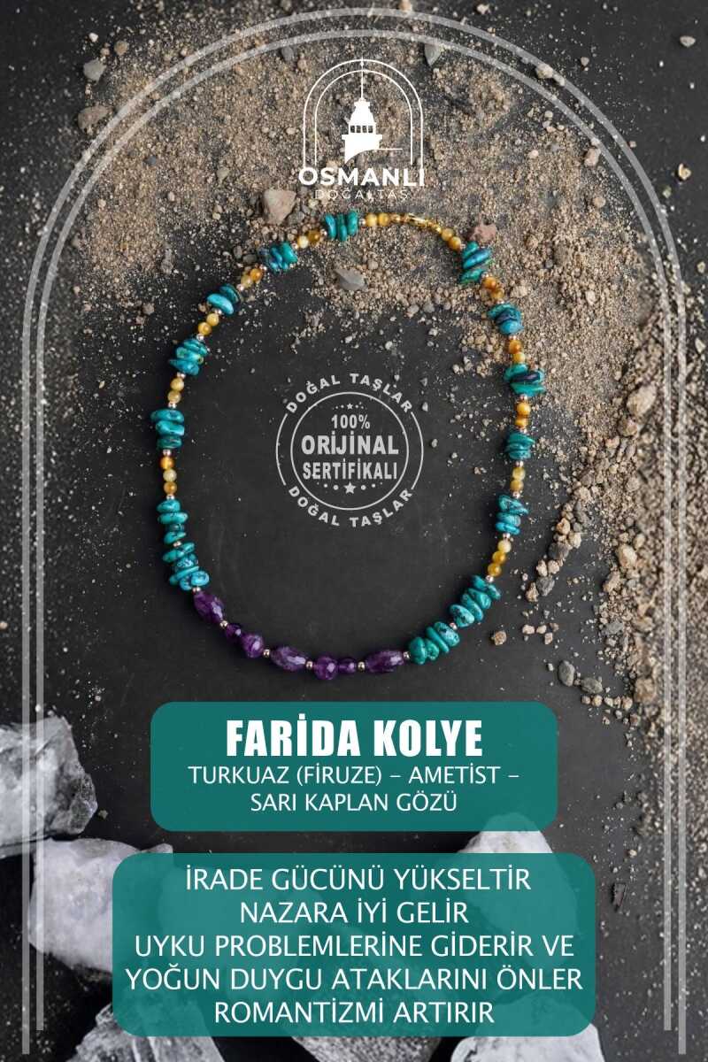 Farida, Firuze Ametist Sarı Kaplangözü Kolye