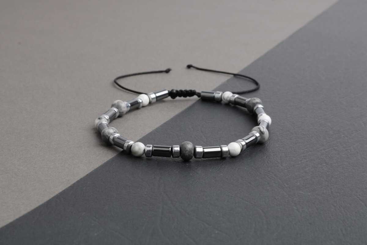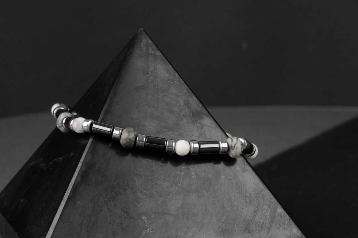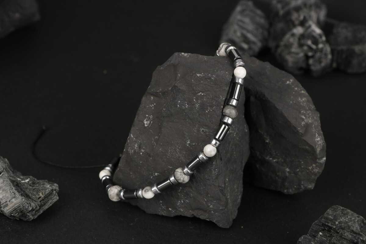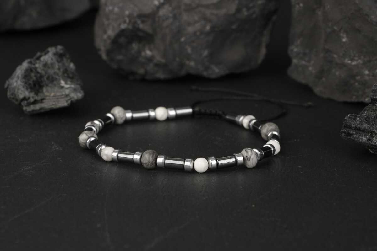Gri Jasper-Hematit-Havlit Doğal Taş Bileklik