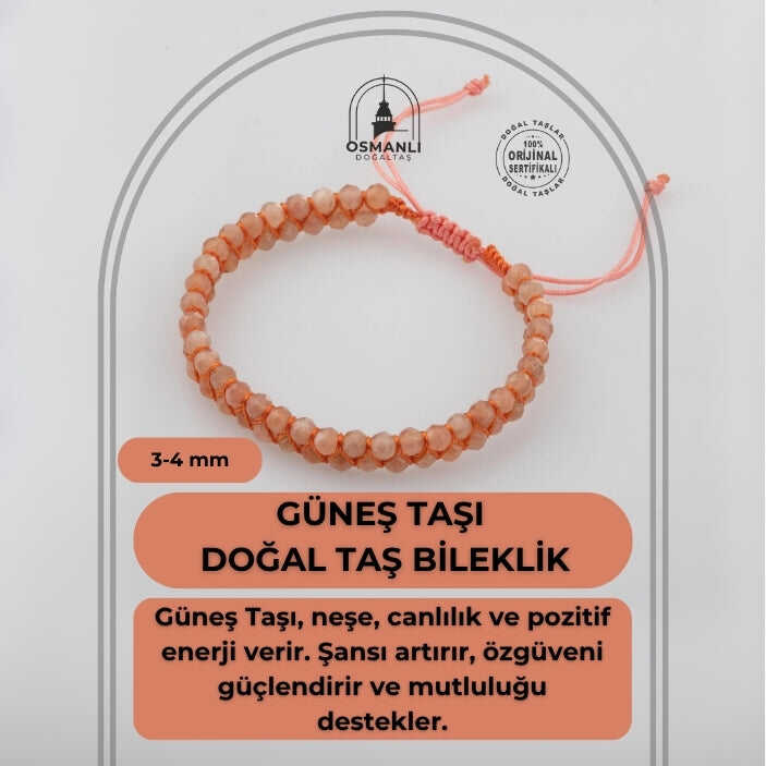 Güneş Taşı 3-4mm Çift Sıra Doğal Taş Bileklik