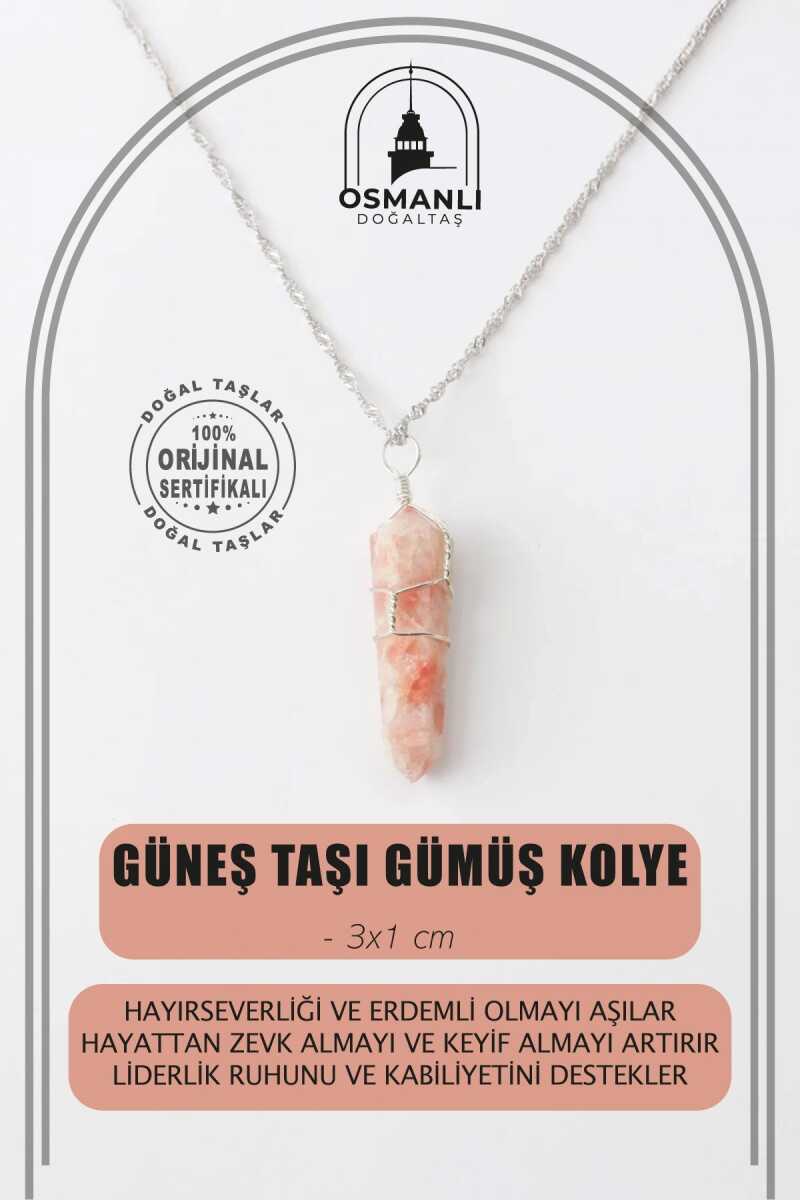 Güneş Taşı Doğal Taş Kolye Ucu 3x1 cm, Gümüş Zincir