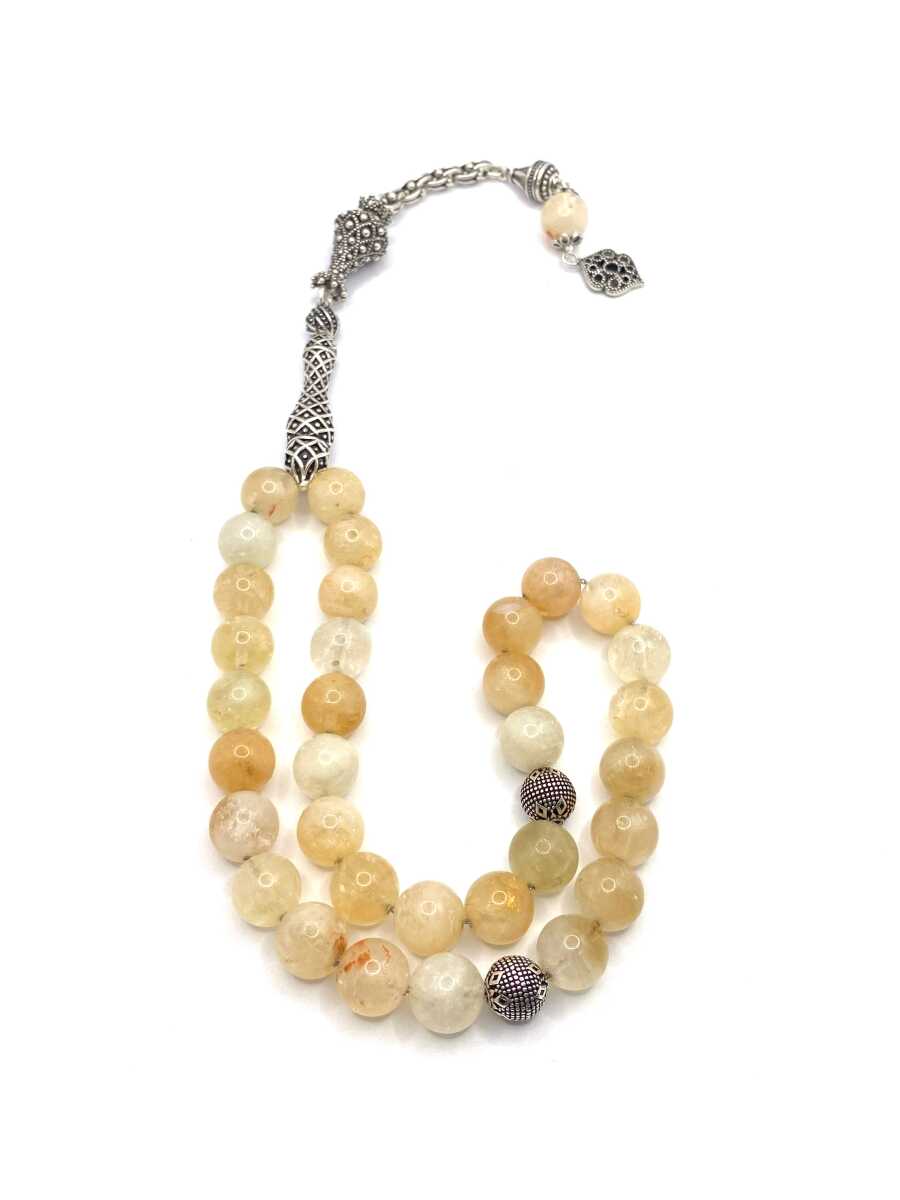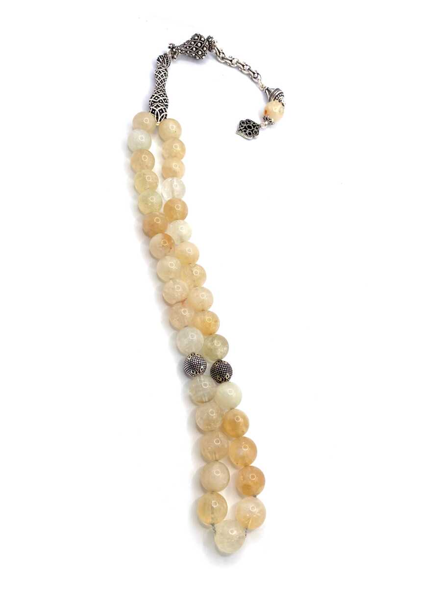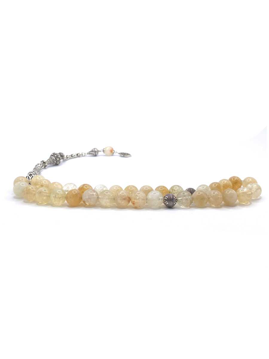 Hakiki Doğal Sertifikalı Sitrin 10 Mm Doğal Taş 33&39;lük Tesbih - Doğal Taşlı İmame 925 Ayar Gümüş