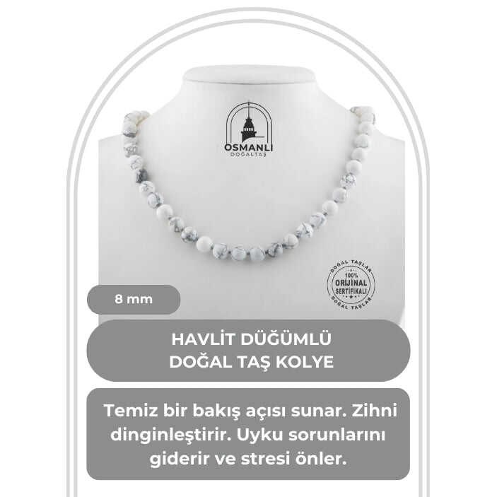 Havlit 8 mm Düğümlü Doğal Taş Kolye