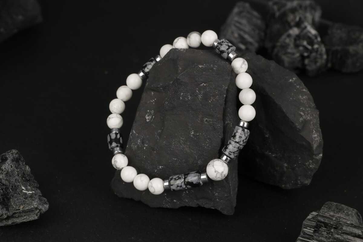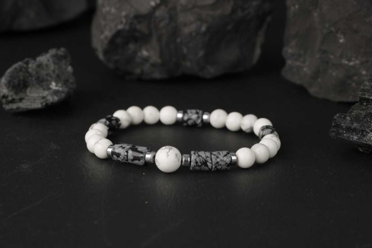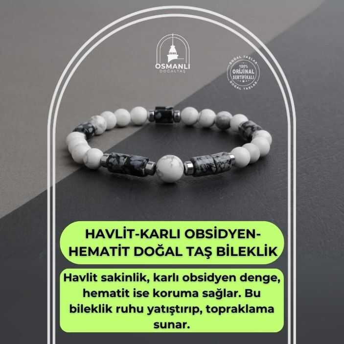 Havlit-Karlı Obsidyen-Hematit Doğal Taş Bileklik