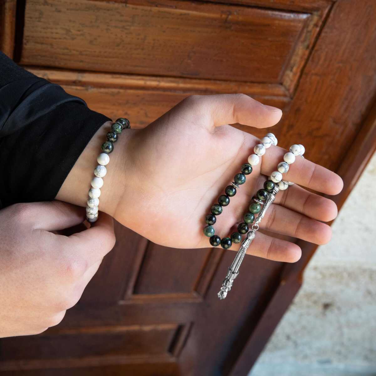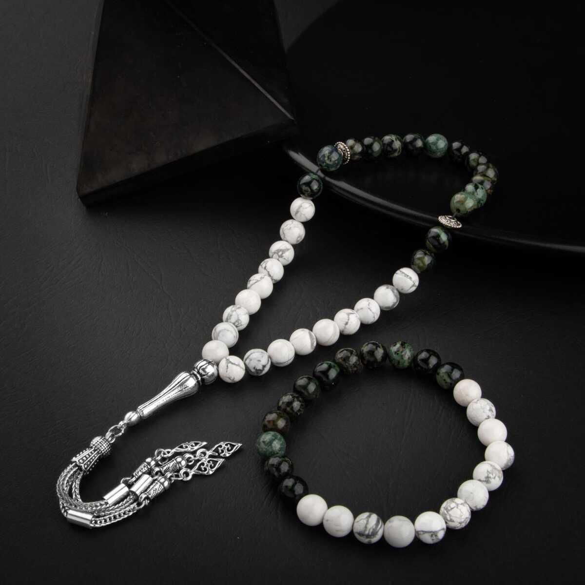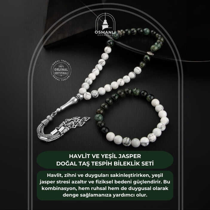 Havlit-Yeşil Jasper Doğal Taş Tesbih Bileklik Seti