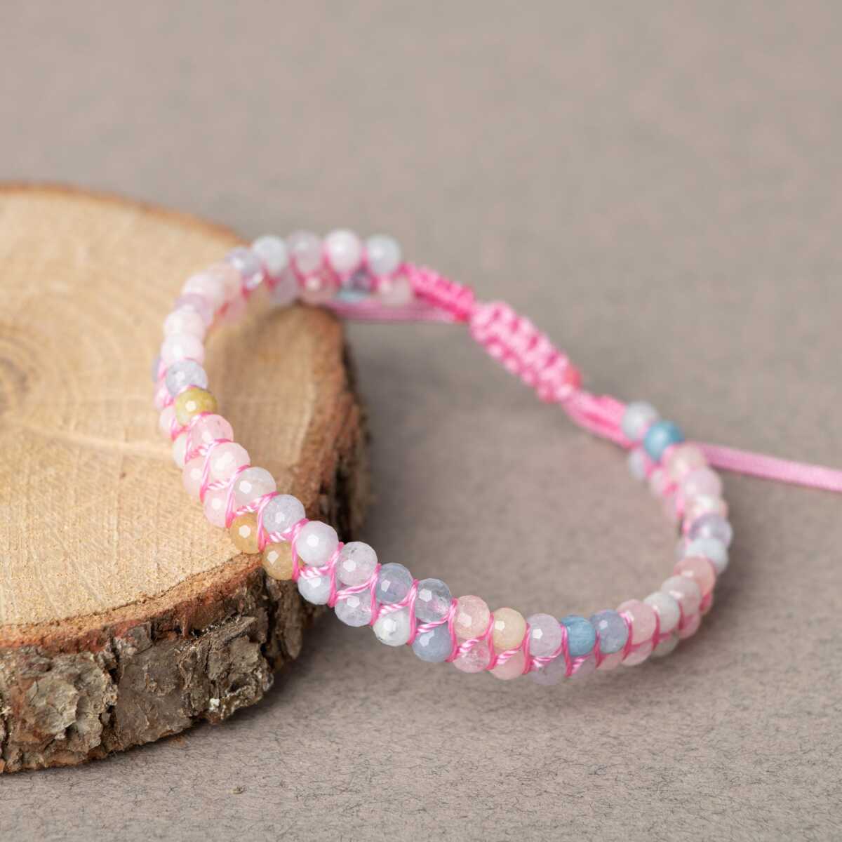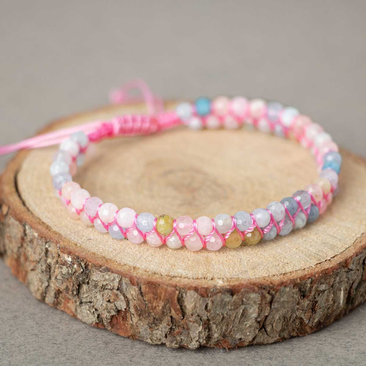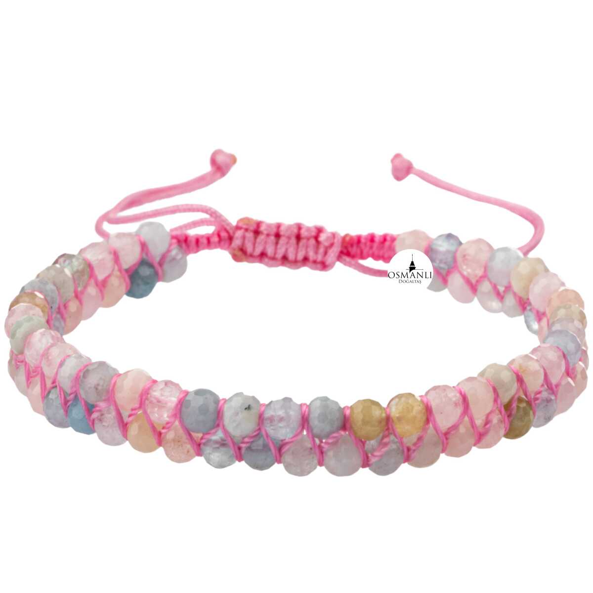 Pembe Kuvars-Akuamarin Doğal Taş Bileklik