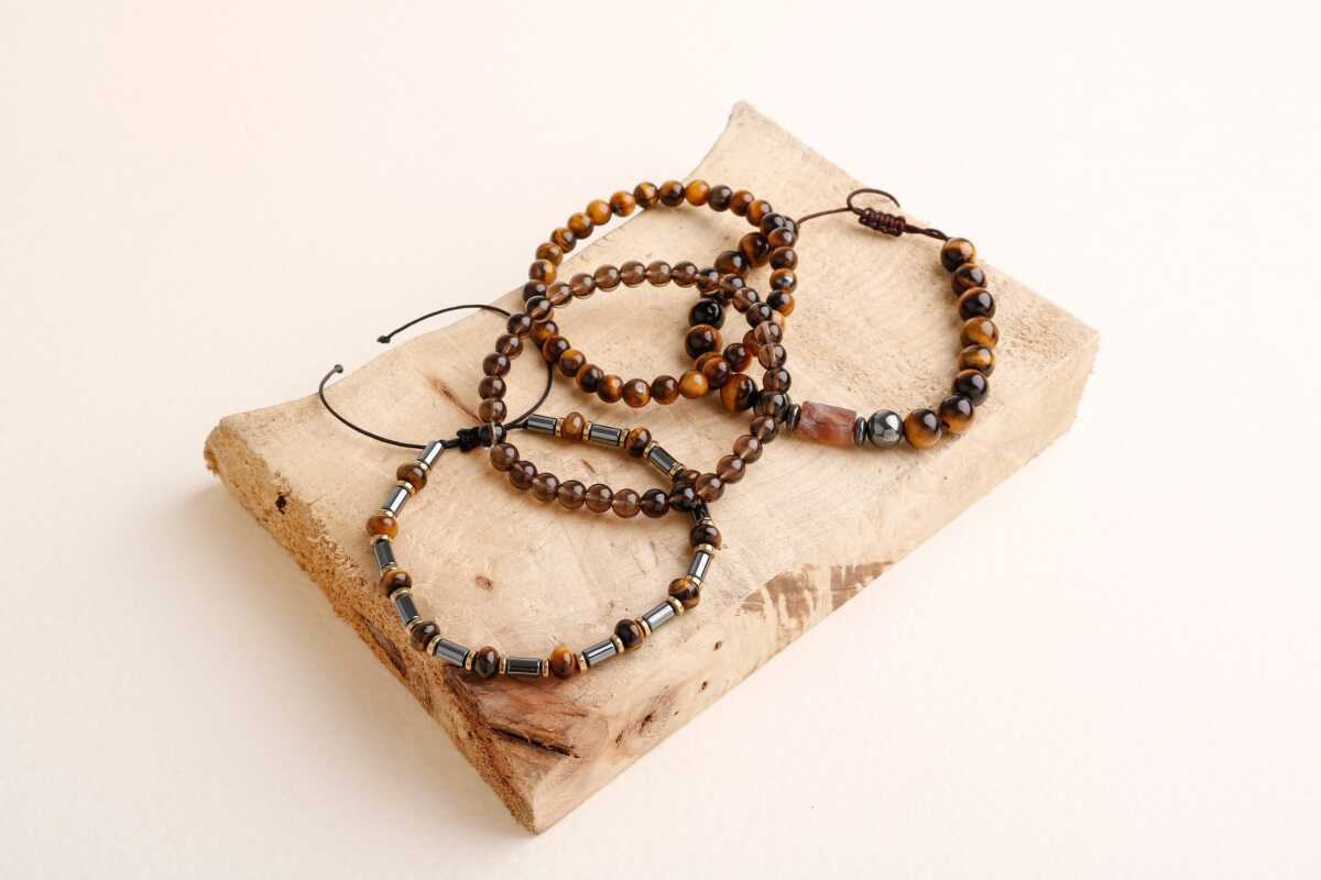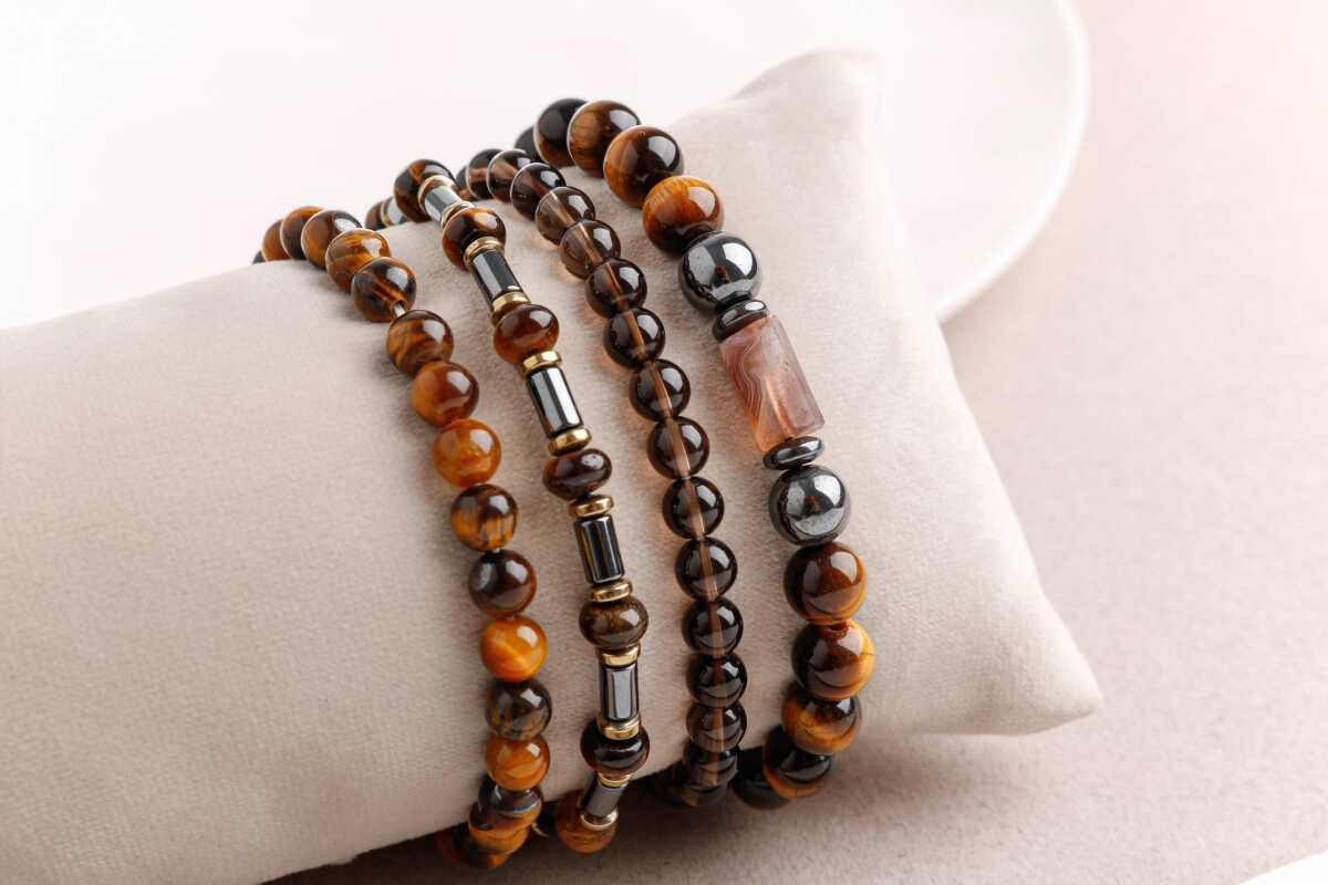 Hematit-Kaplan Gözü-Dumanlı Kuvars Erkek Doğal Taş Bileklik Seti