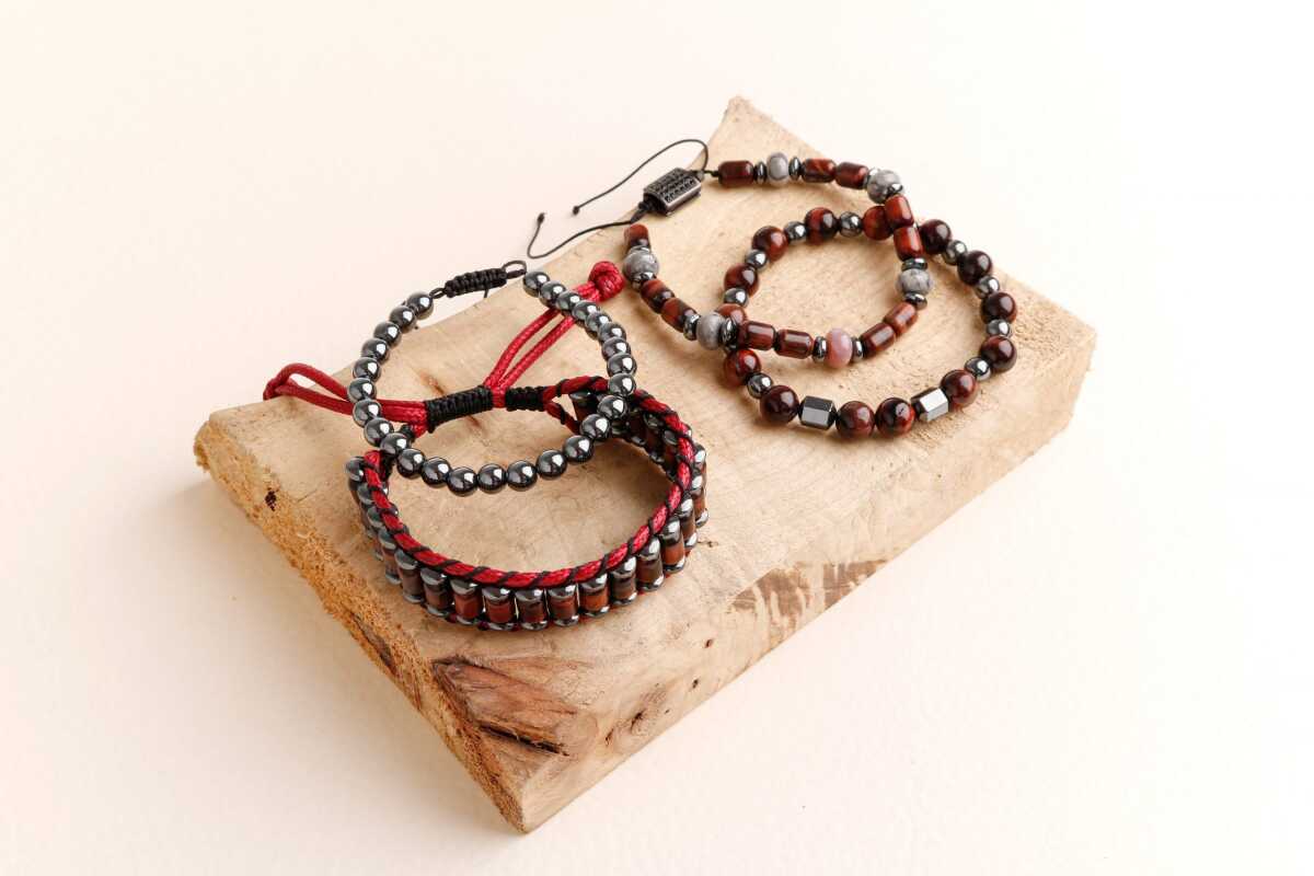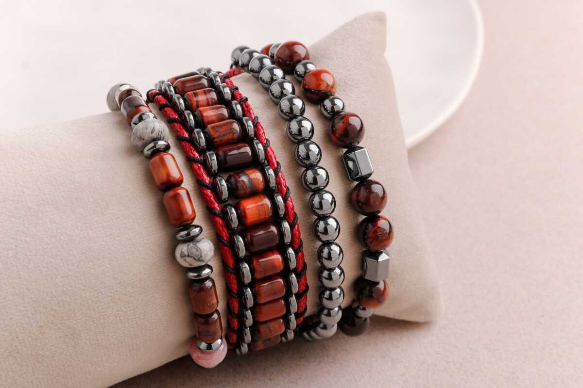 Hematit-Pembe Kuvars-Krizokol-Ametist-Kaplan Gözü Doğal Taş Bileklik