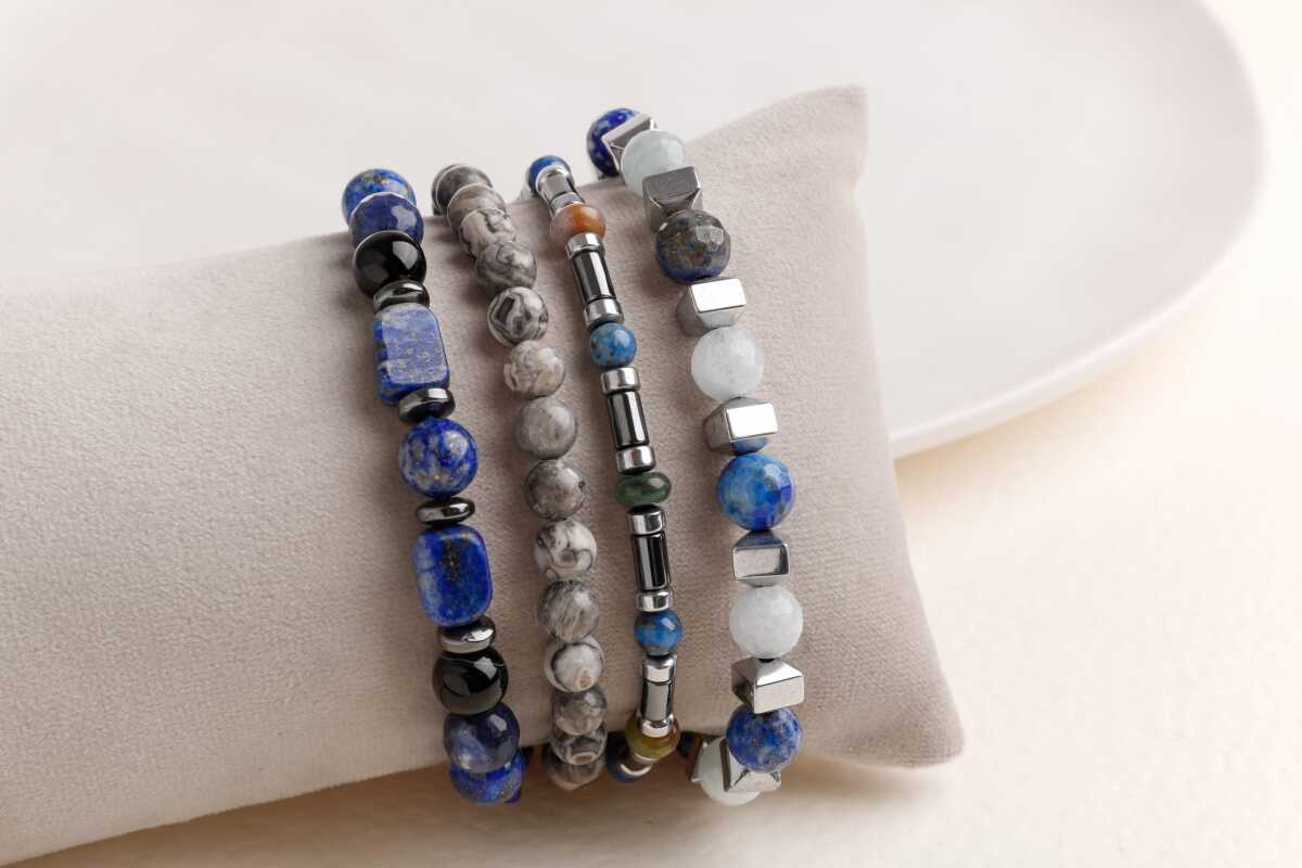 Hematit-Lapis-Jasper Erkek Doğal Taş Bileklik Seti