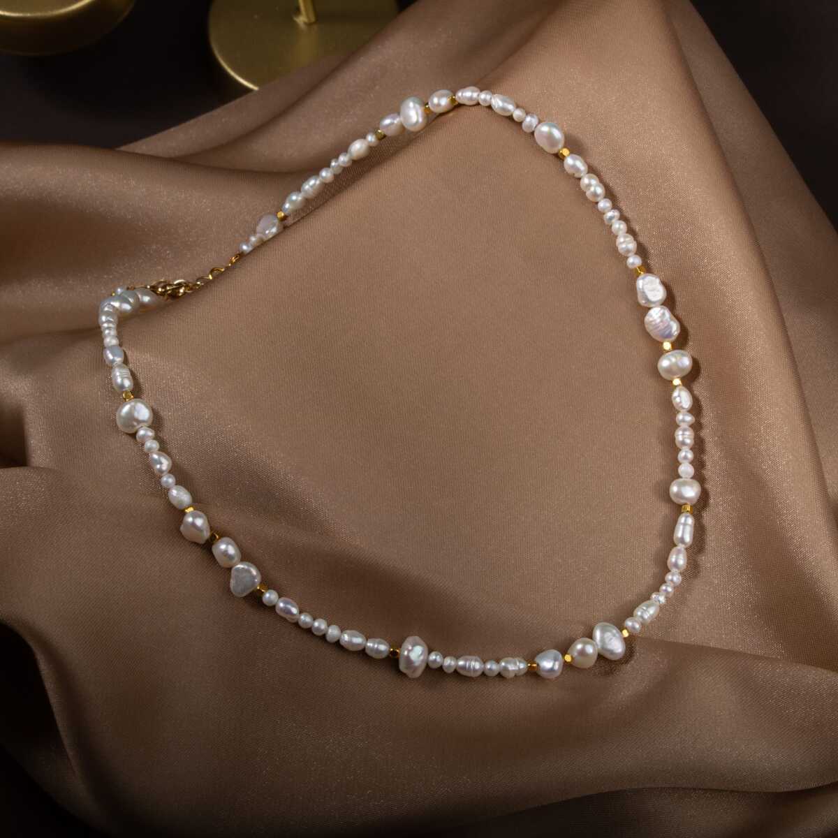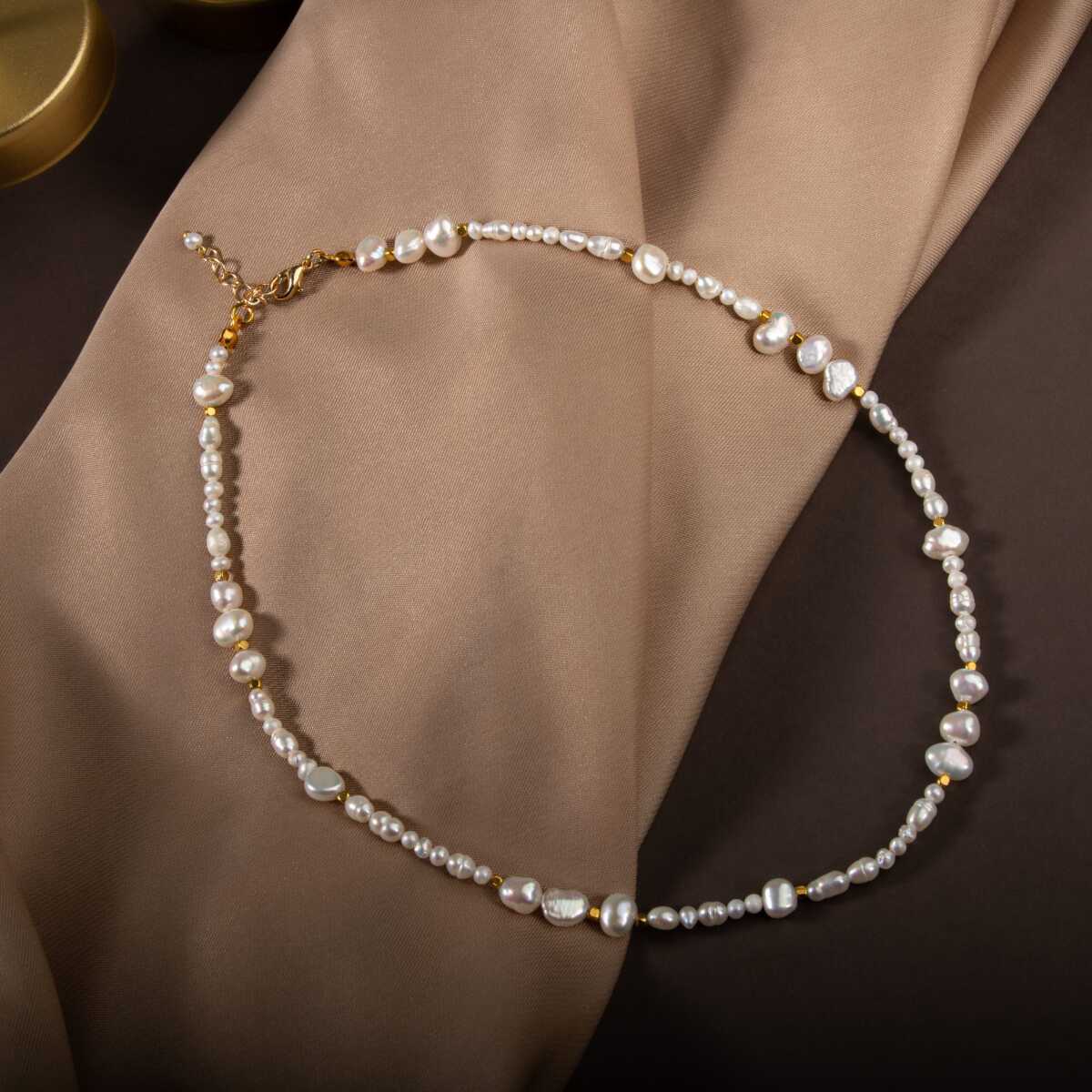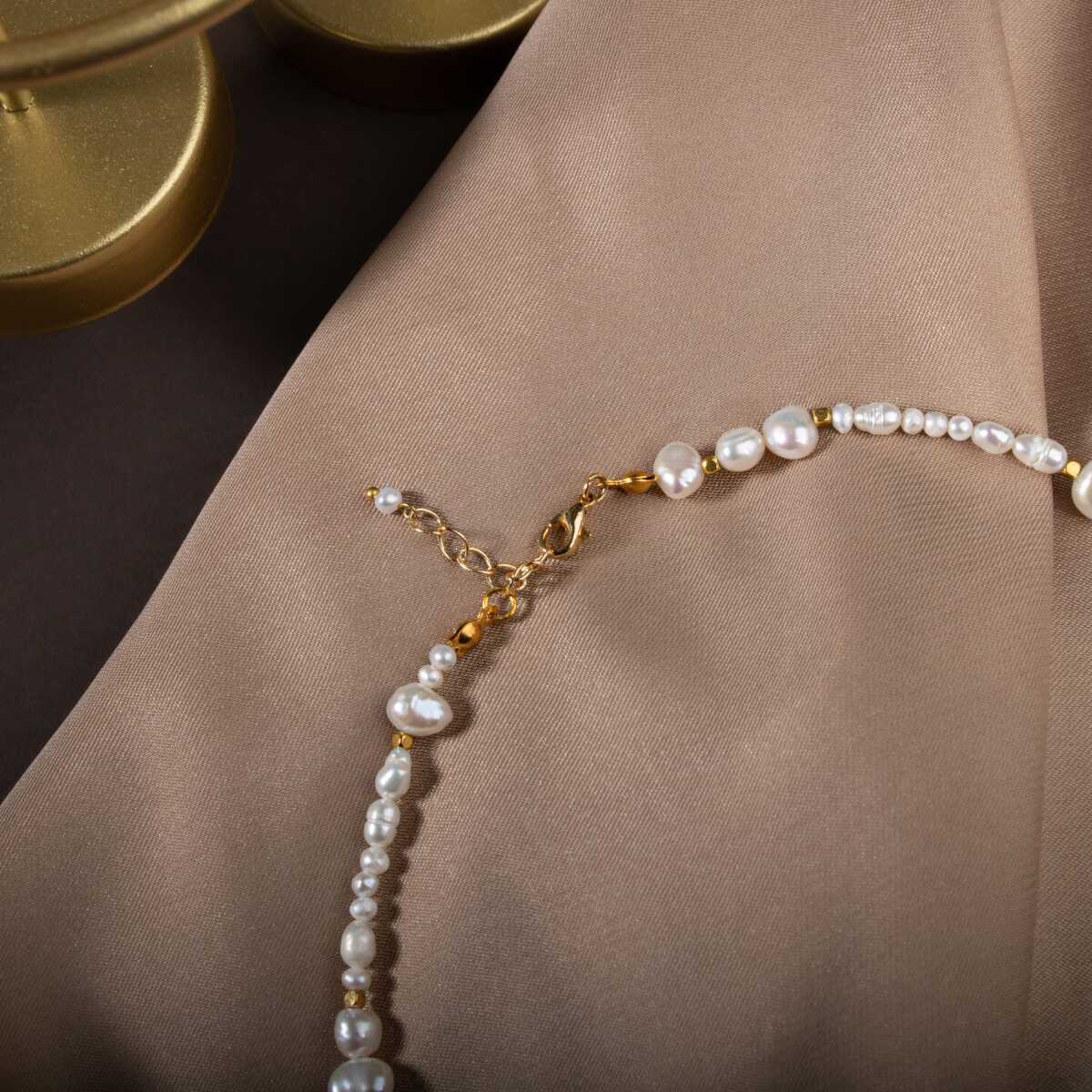 Barok İnci Doğal Taş Gümüş Kapama Kolye - 54cm