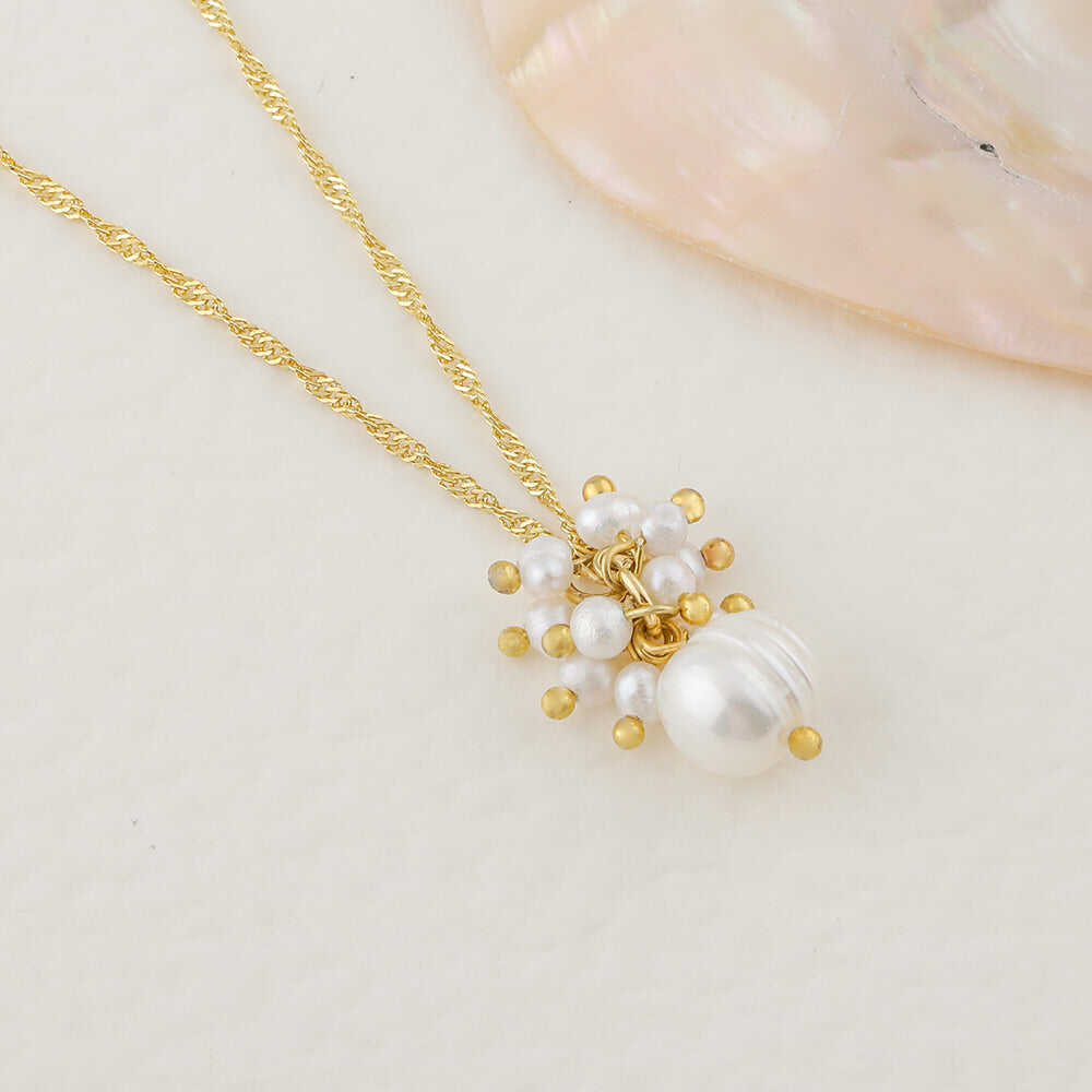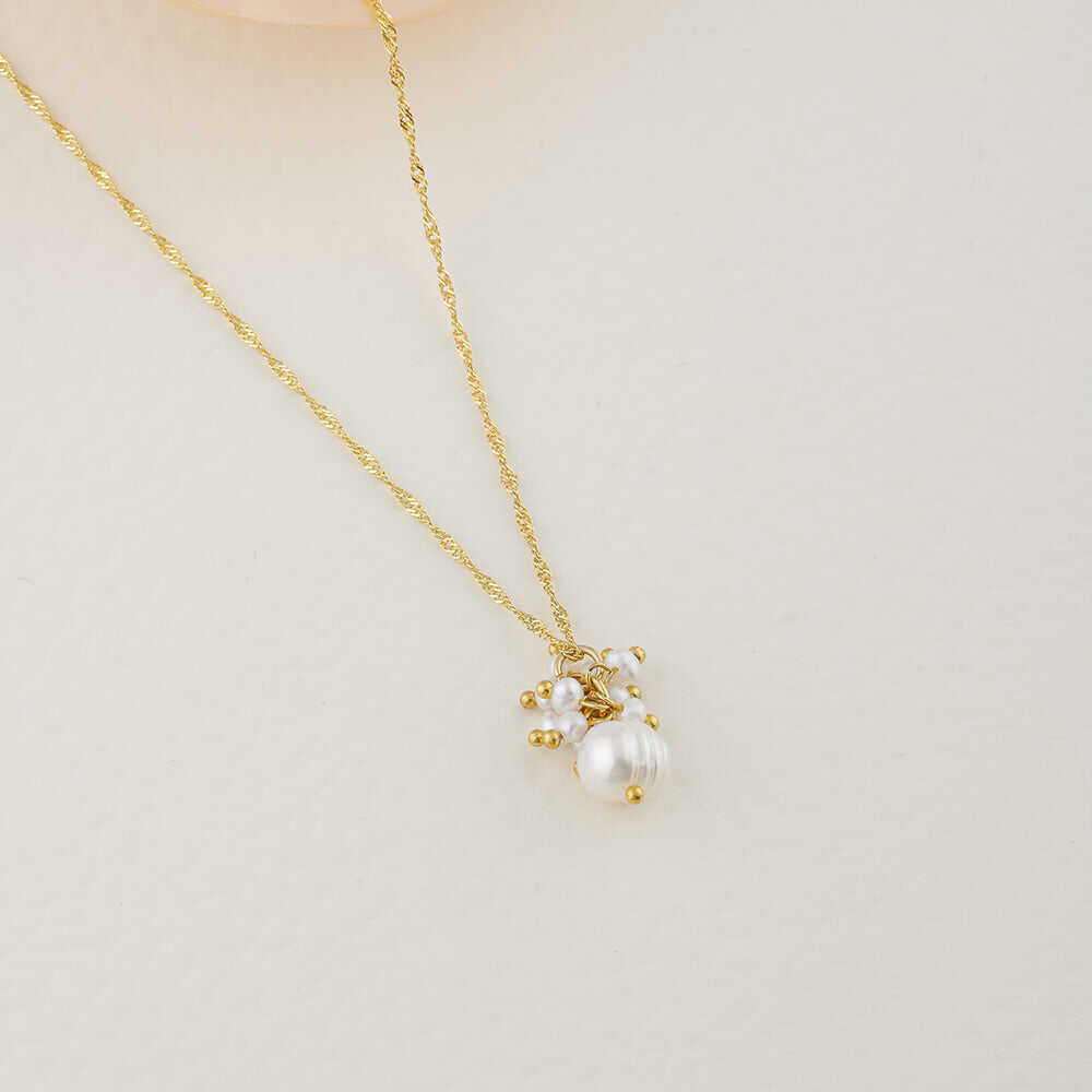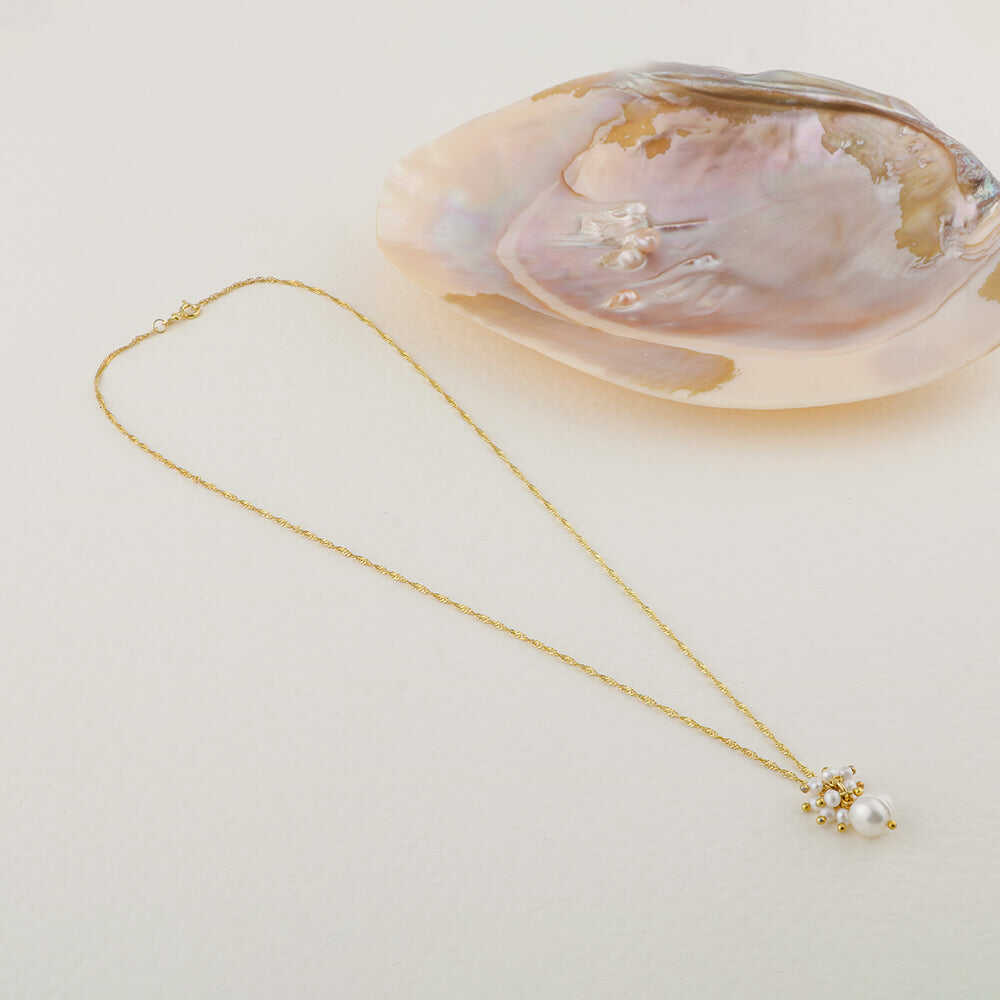 İnci Altın Kaplama Zincir Doğal Taş Kolye