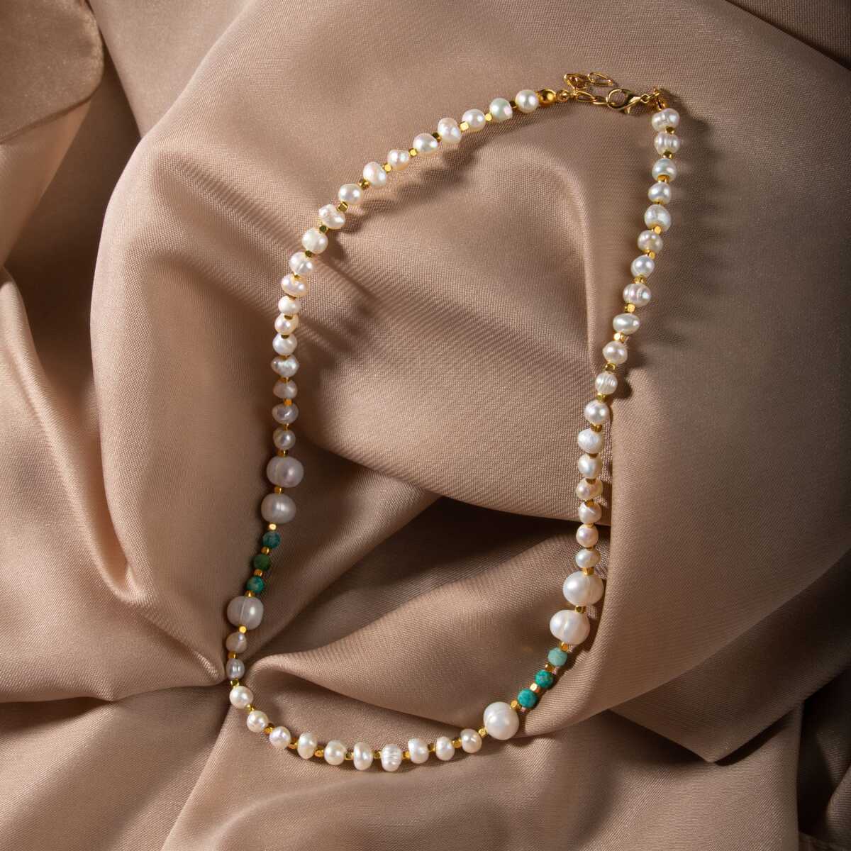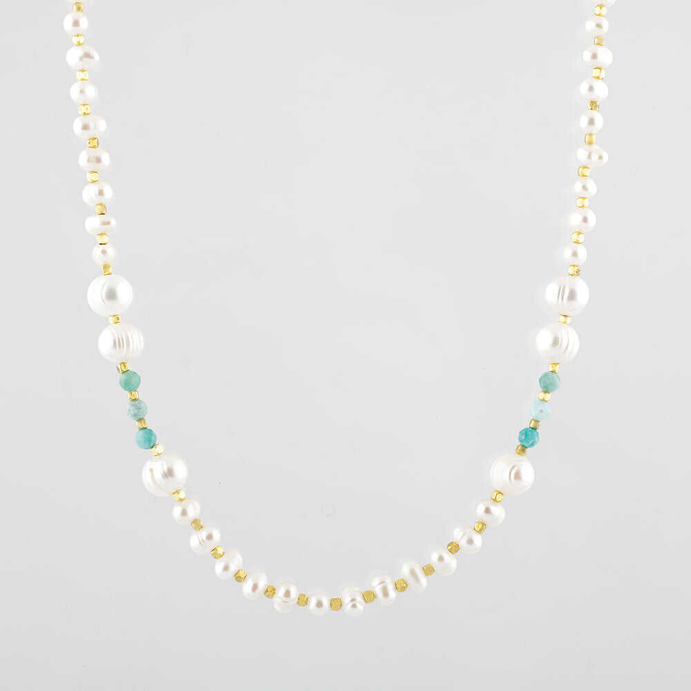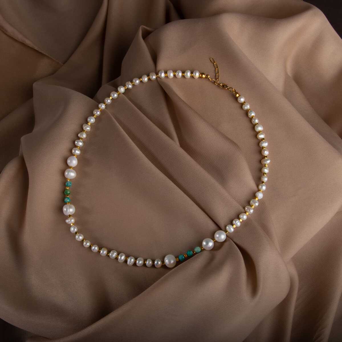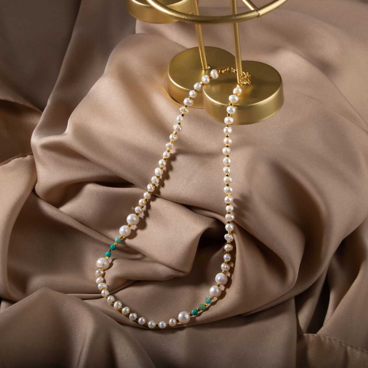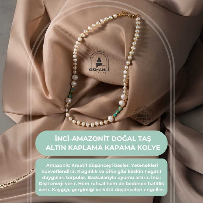 İnci-Amazonit Doğal Taş Altın Kaplama Kapama Kolye