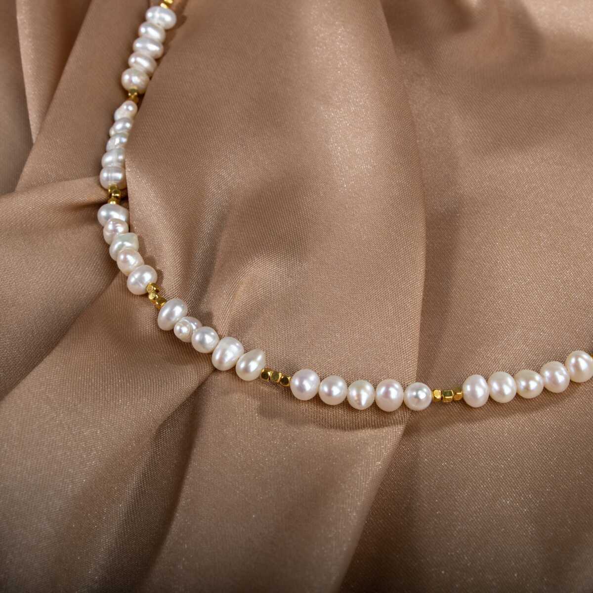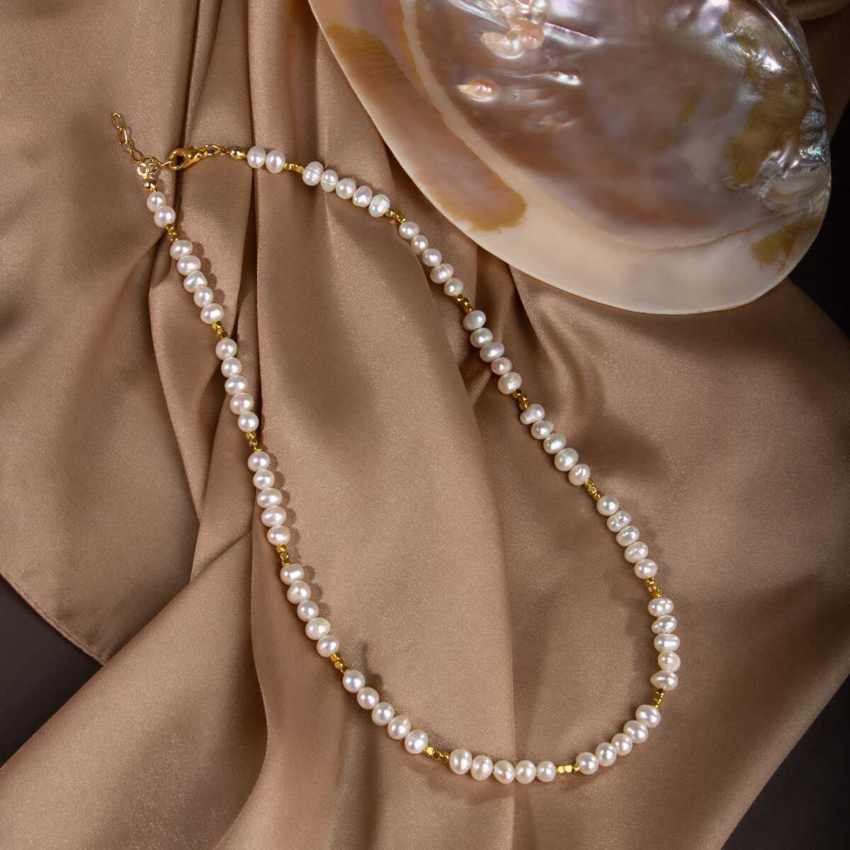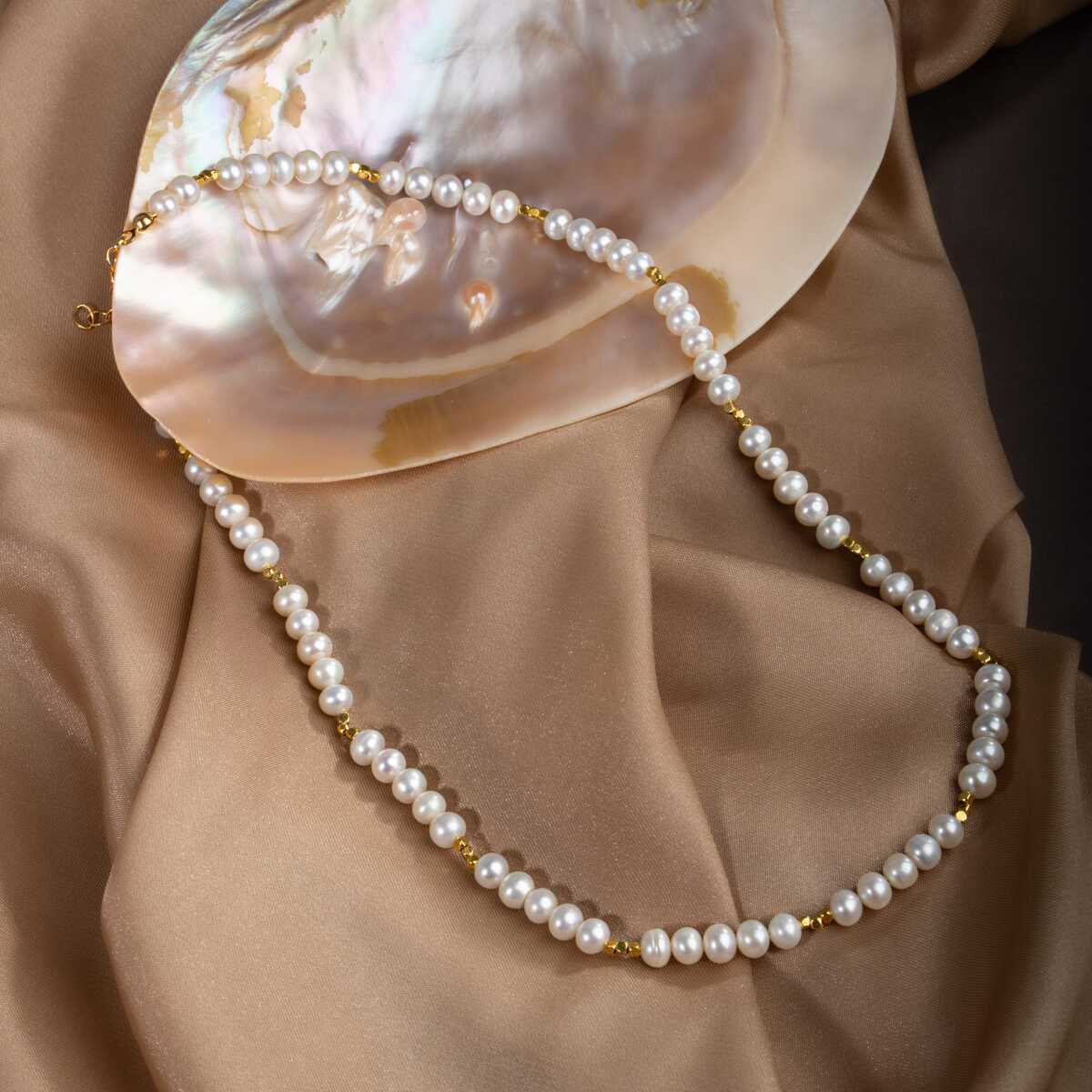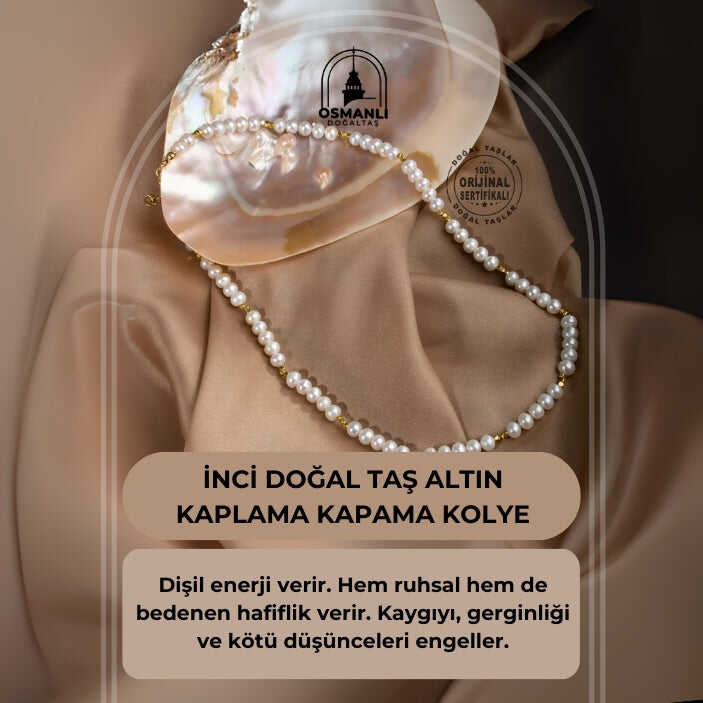 İnci Doğal Taş Altın Kaplama Kapama Kolye