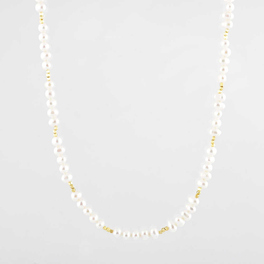 İnci Doğal Taş Gümüş Tasarım Zincir Kolye - 50cm