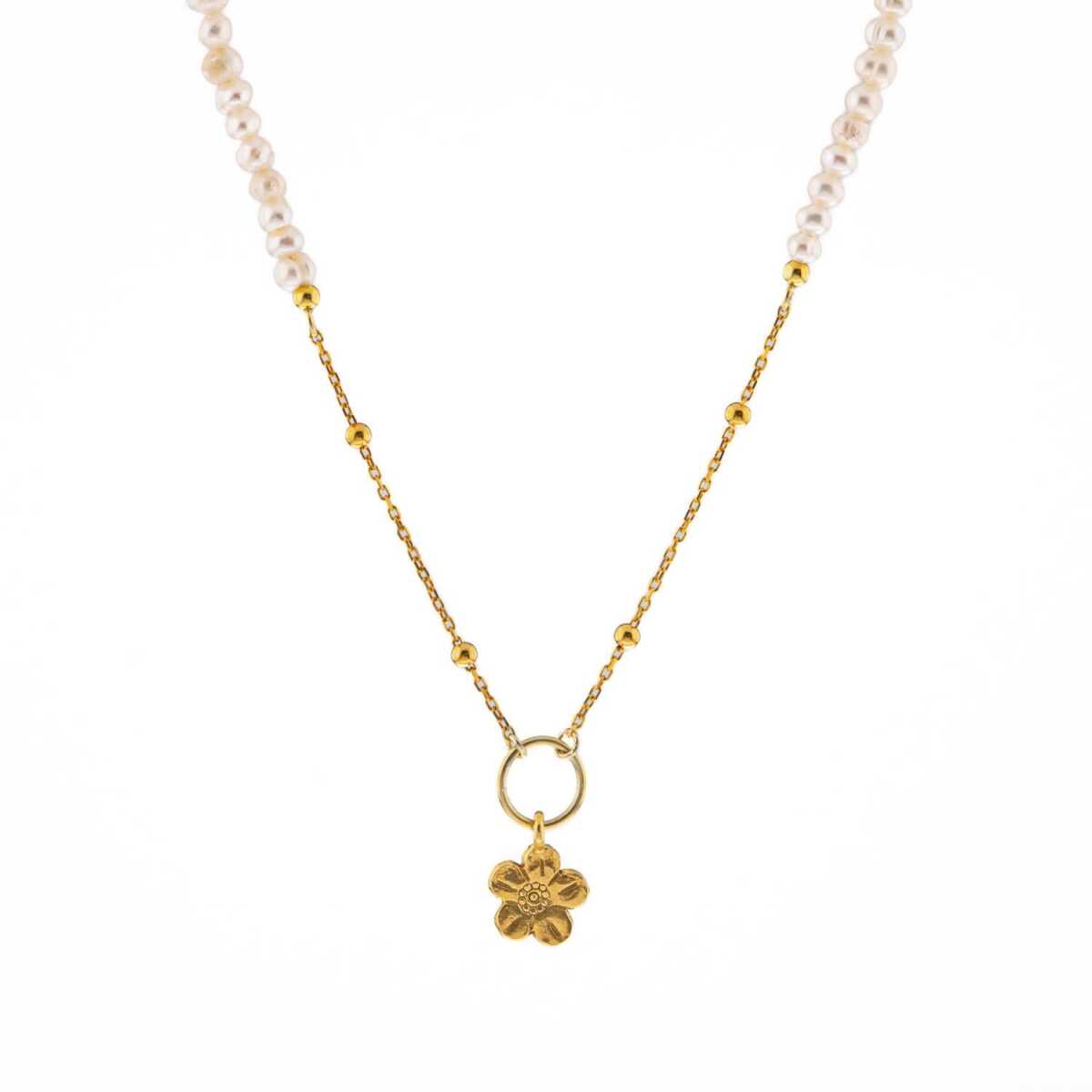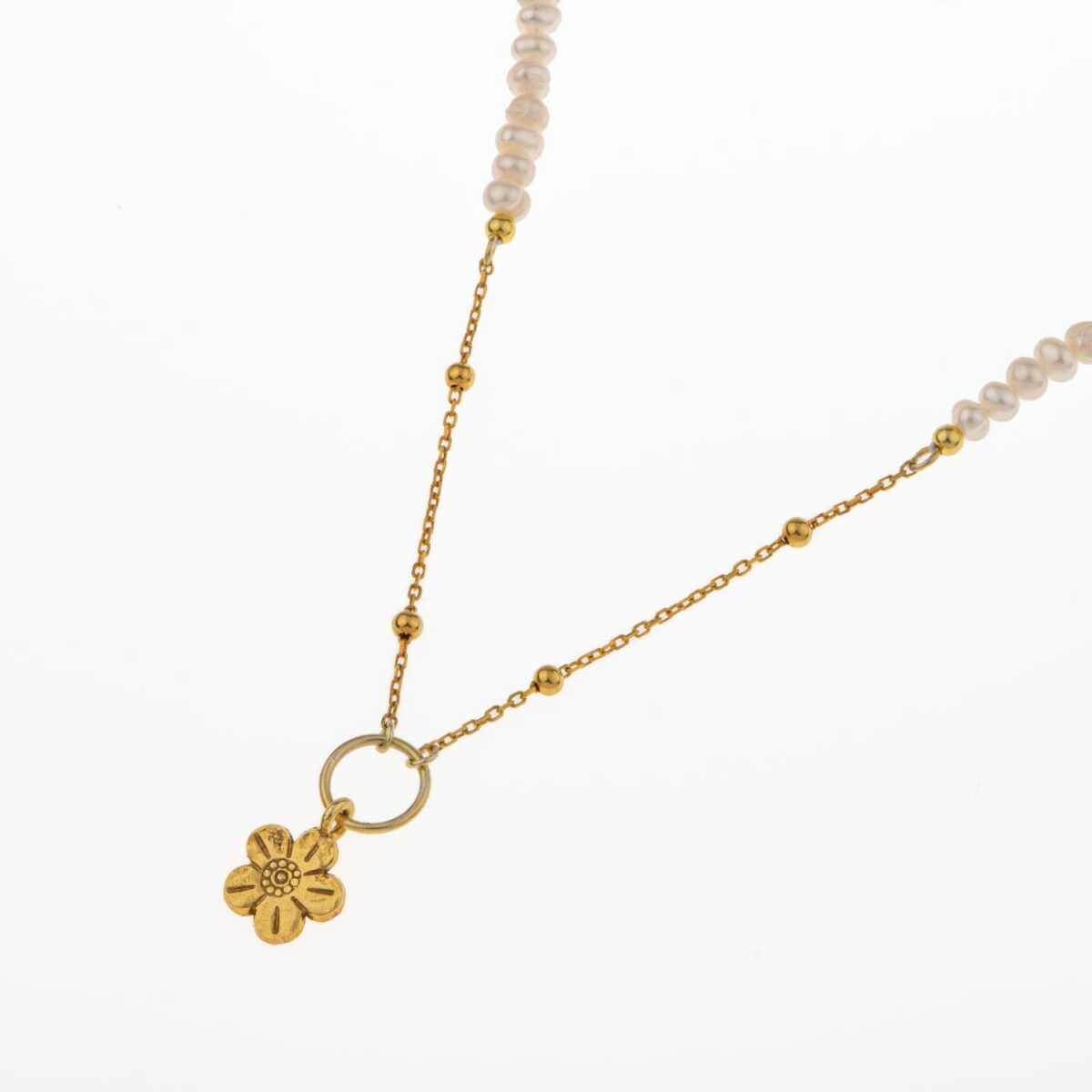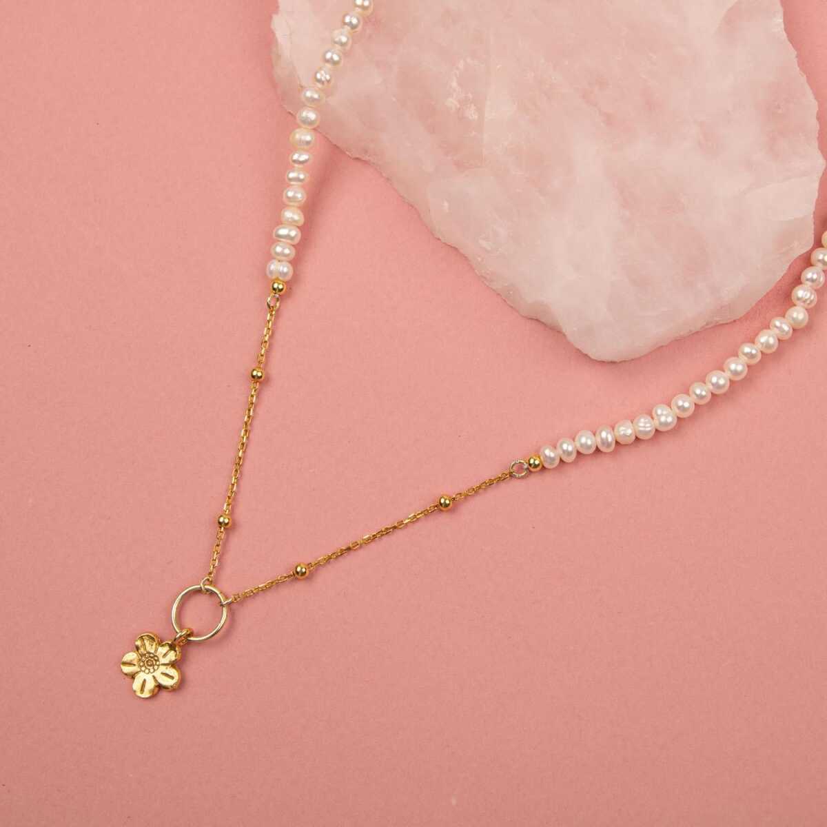 İnci Doğal Taş Gümüş Çiçekli Kolye