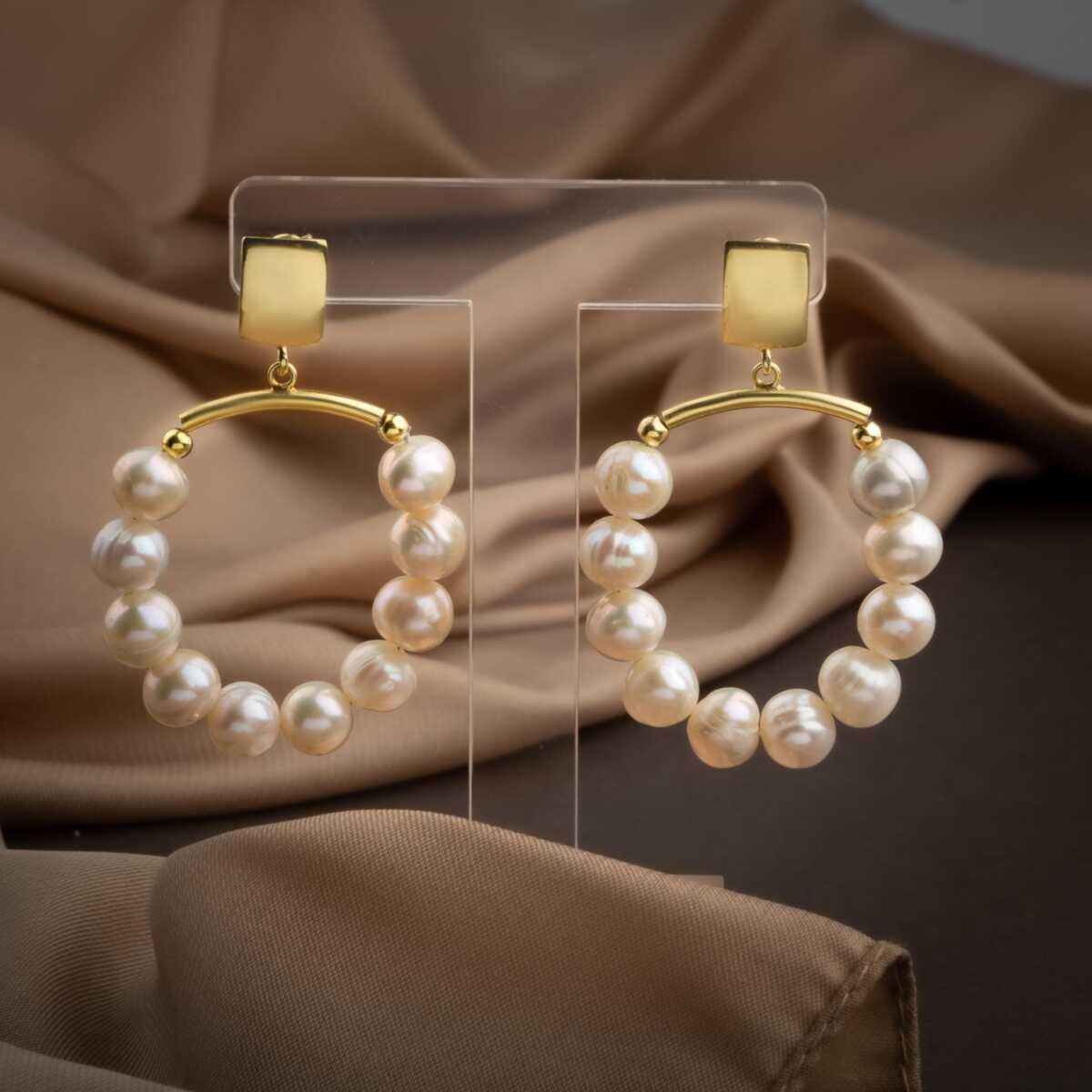 İnci Altın Kaplama Doğal Taş Küpe