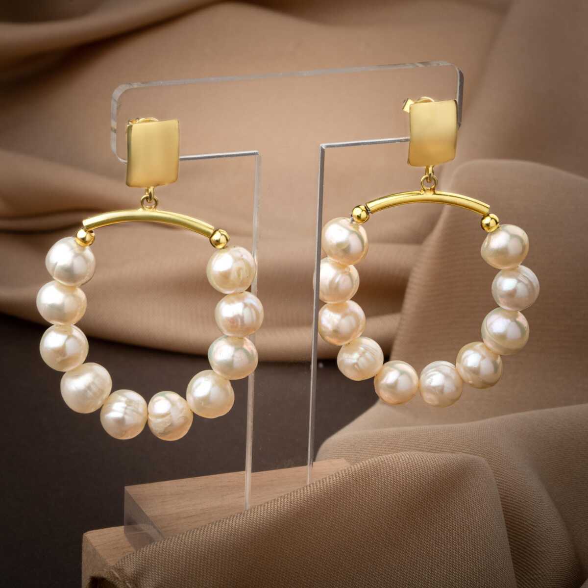 İnci Doğal Taş Gümüş Halka Küpe