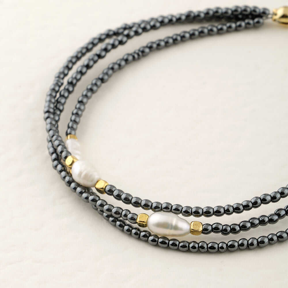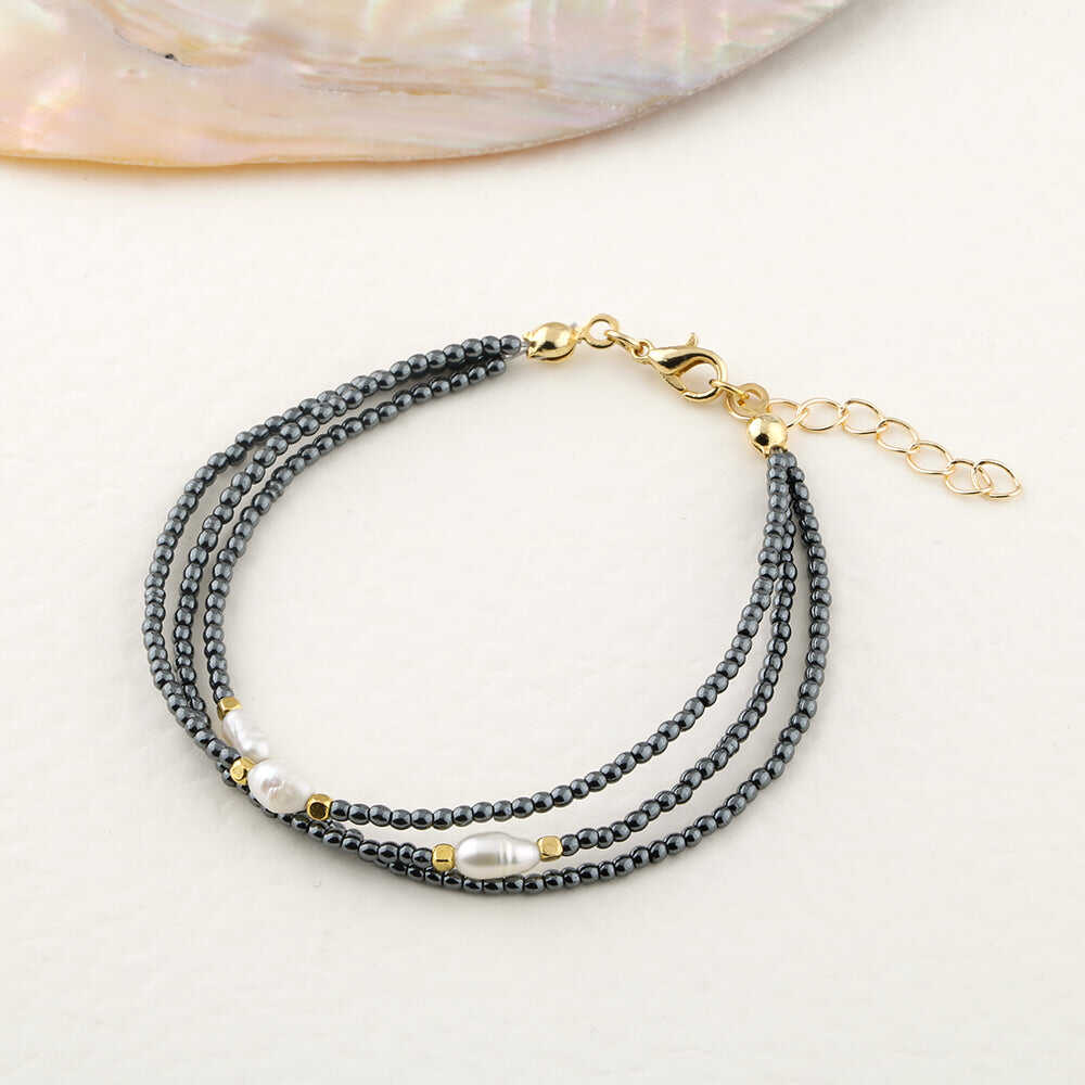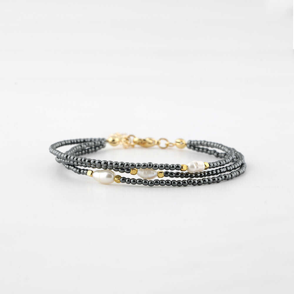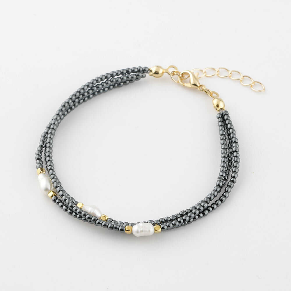 İnci-Hematit Doğal Taş Altın Kaplama Kapama Bileklik