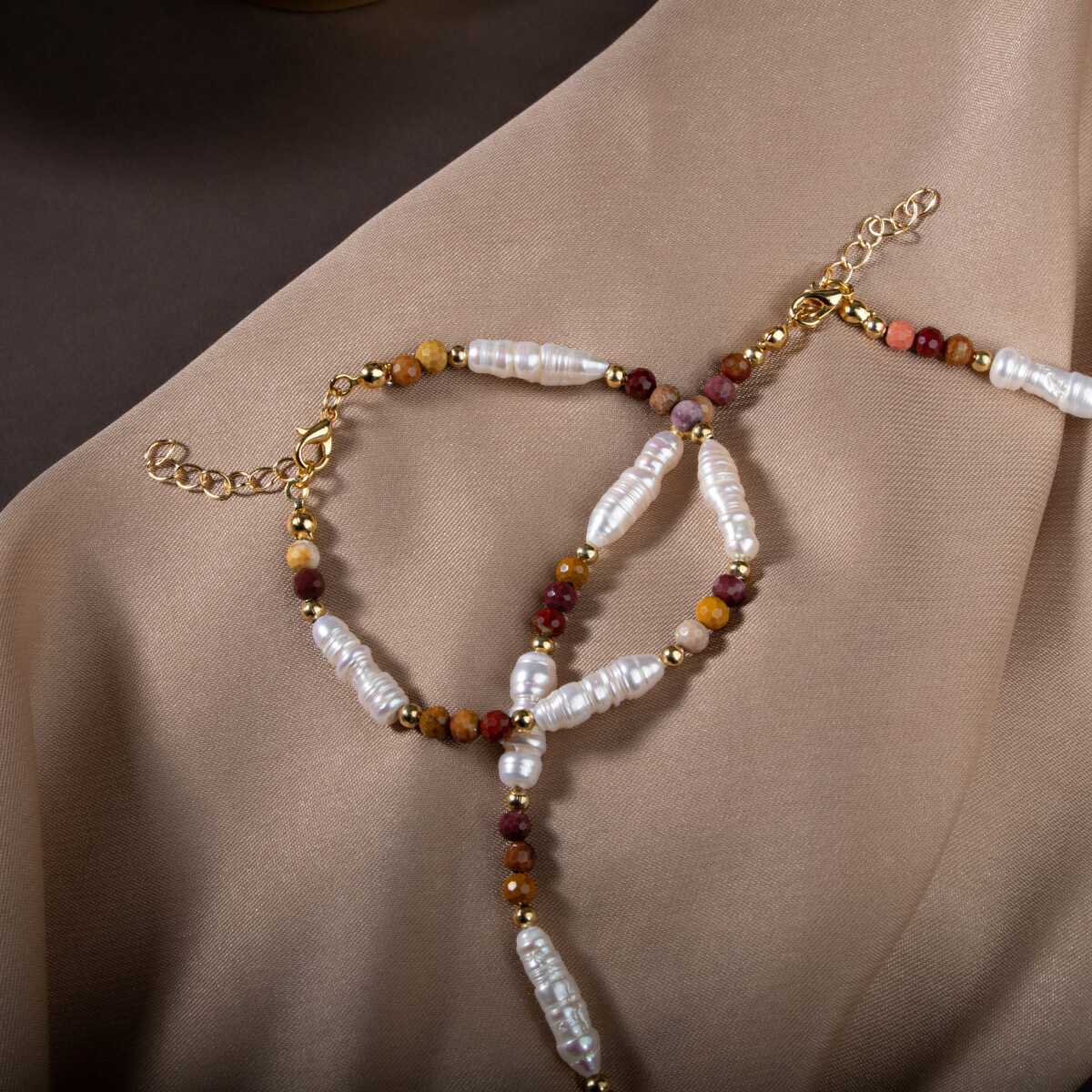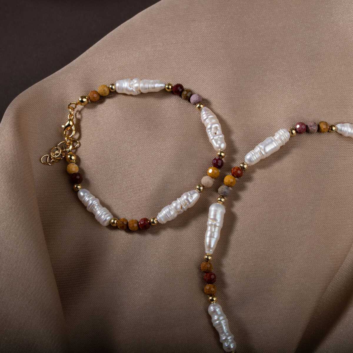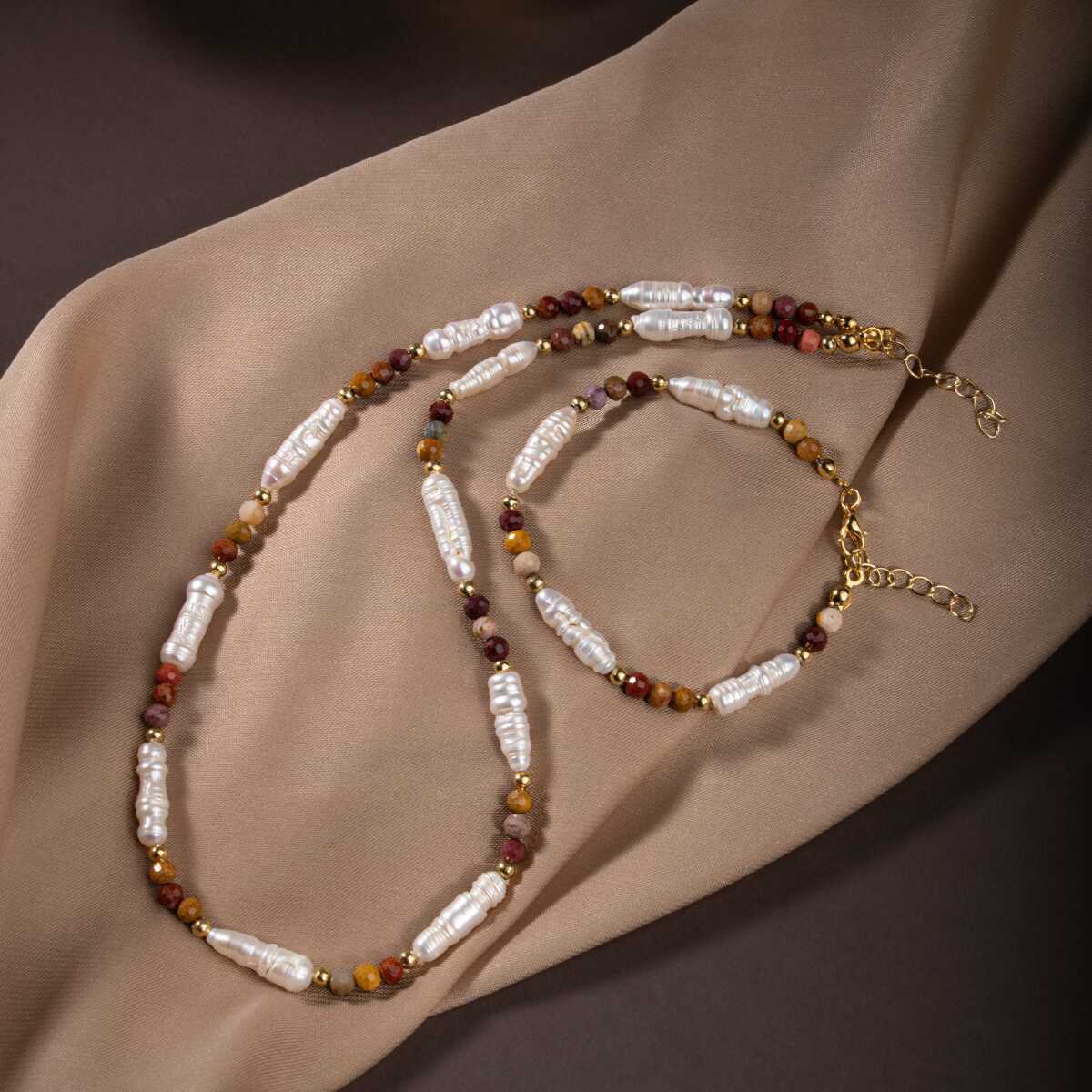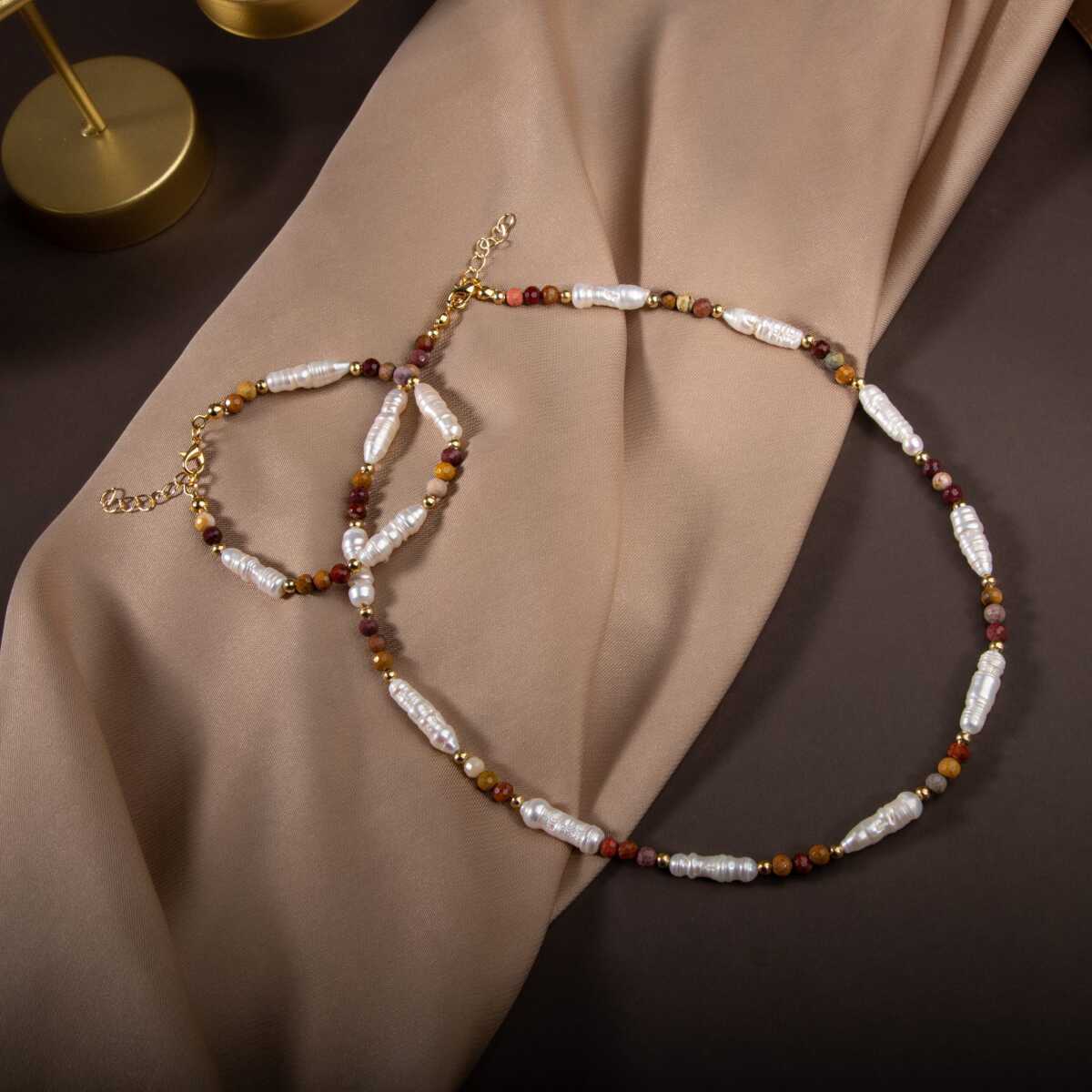 İnci-Jasper Doğal Taş Gümüş Takı Seti