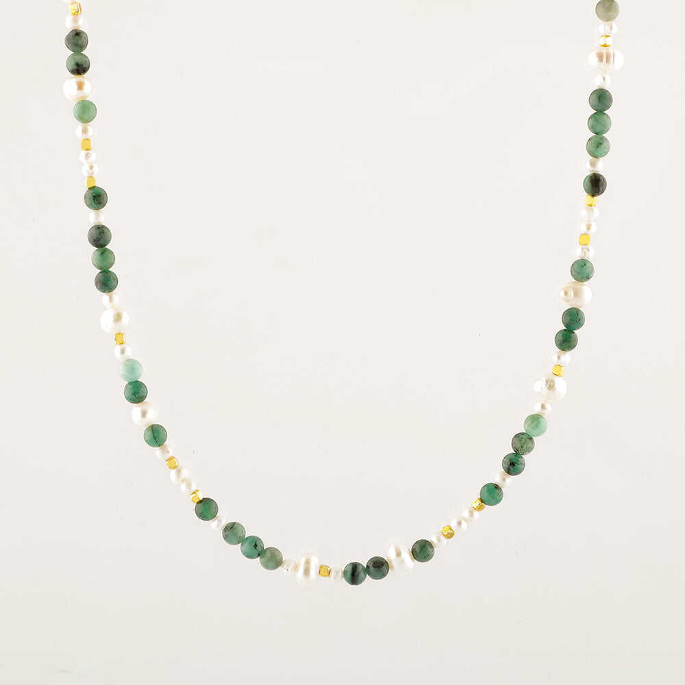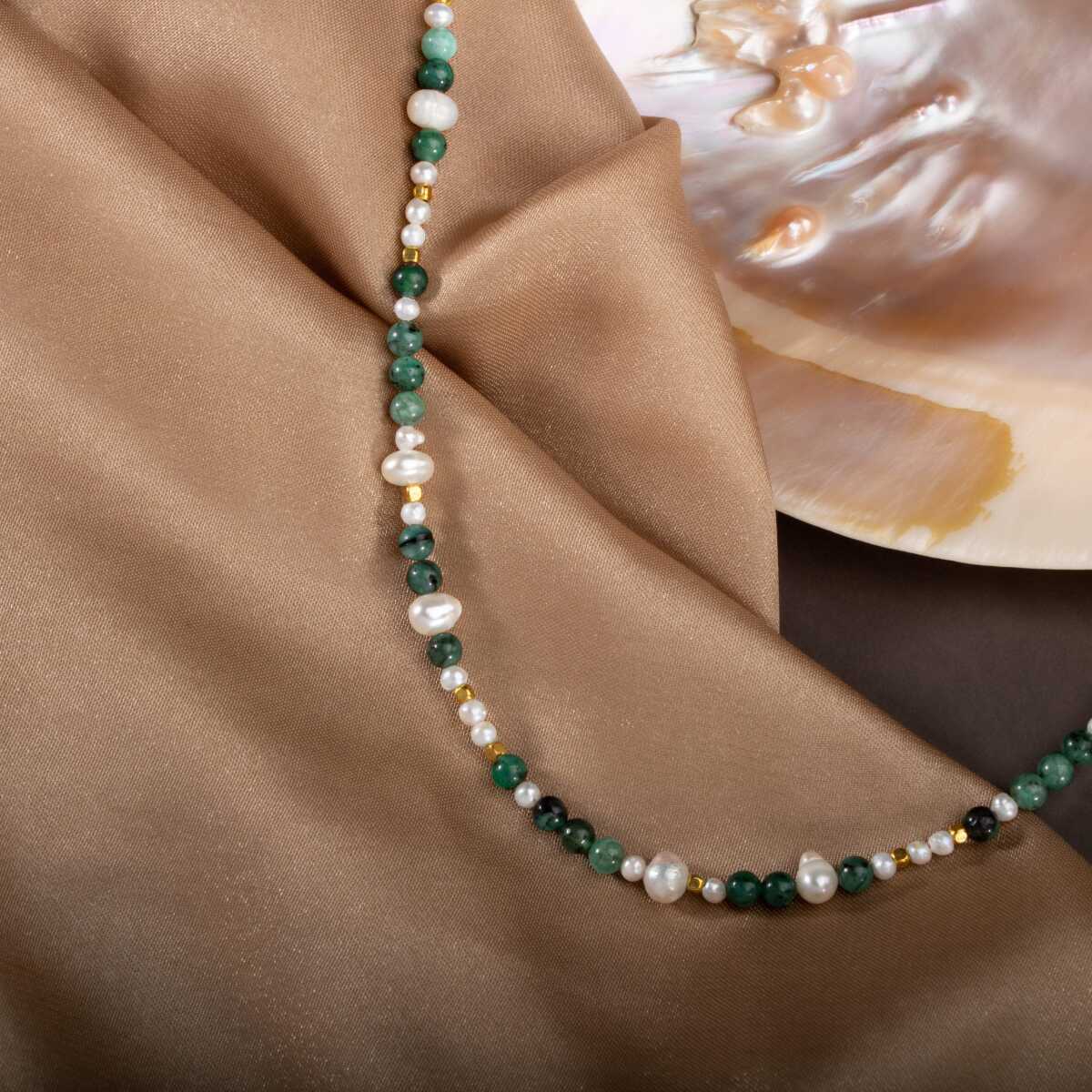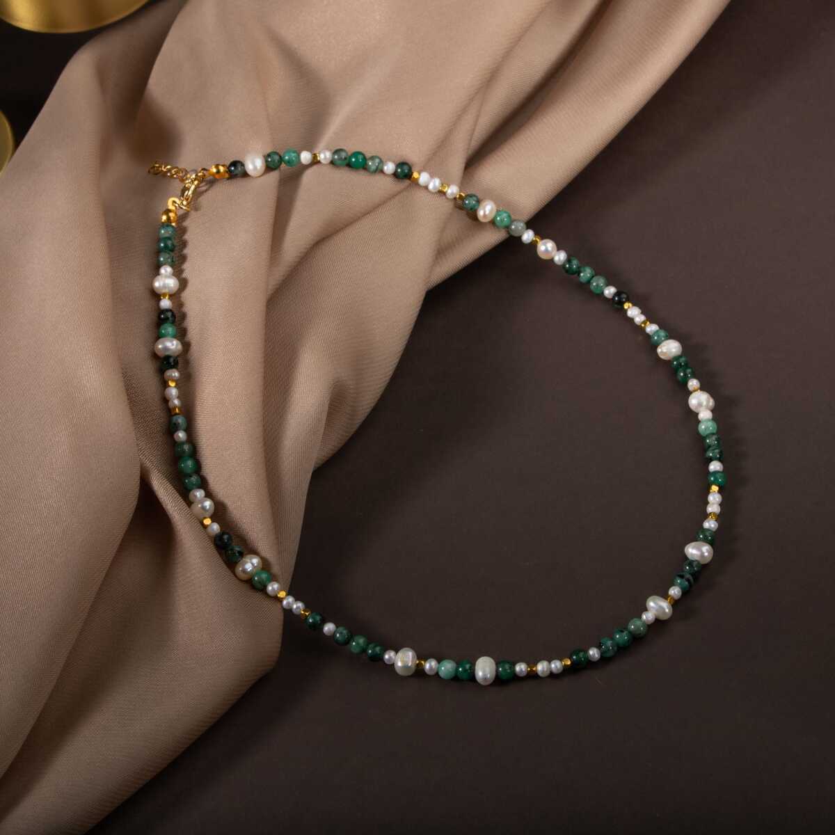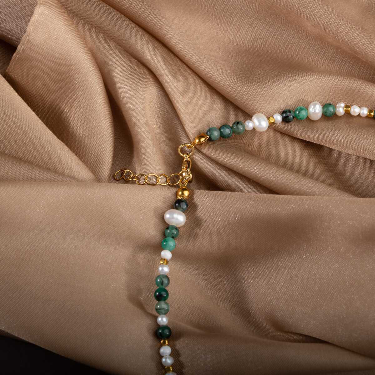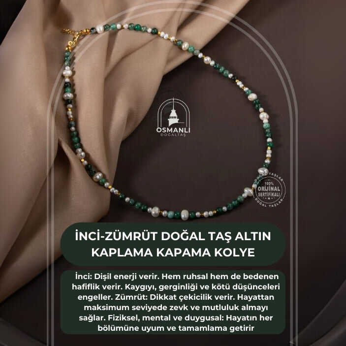 İnci-Zümrüt Doğal Taş Altın Kaplama Kapama Kolye