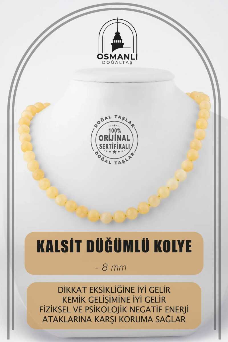 Kalsit 8 mm Düğümlü Doğal Taş Kolye