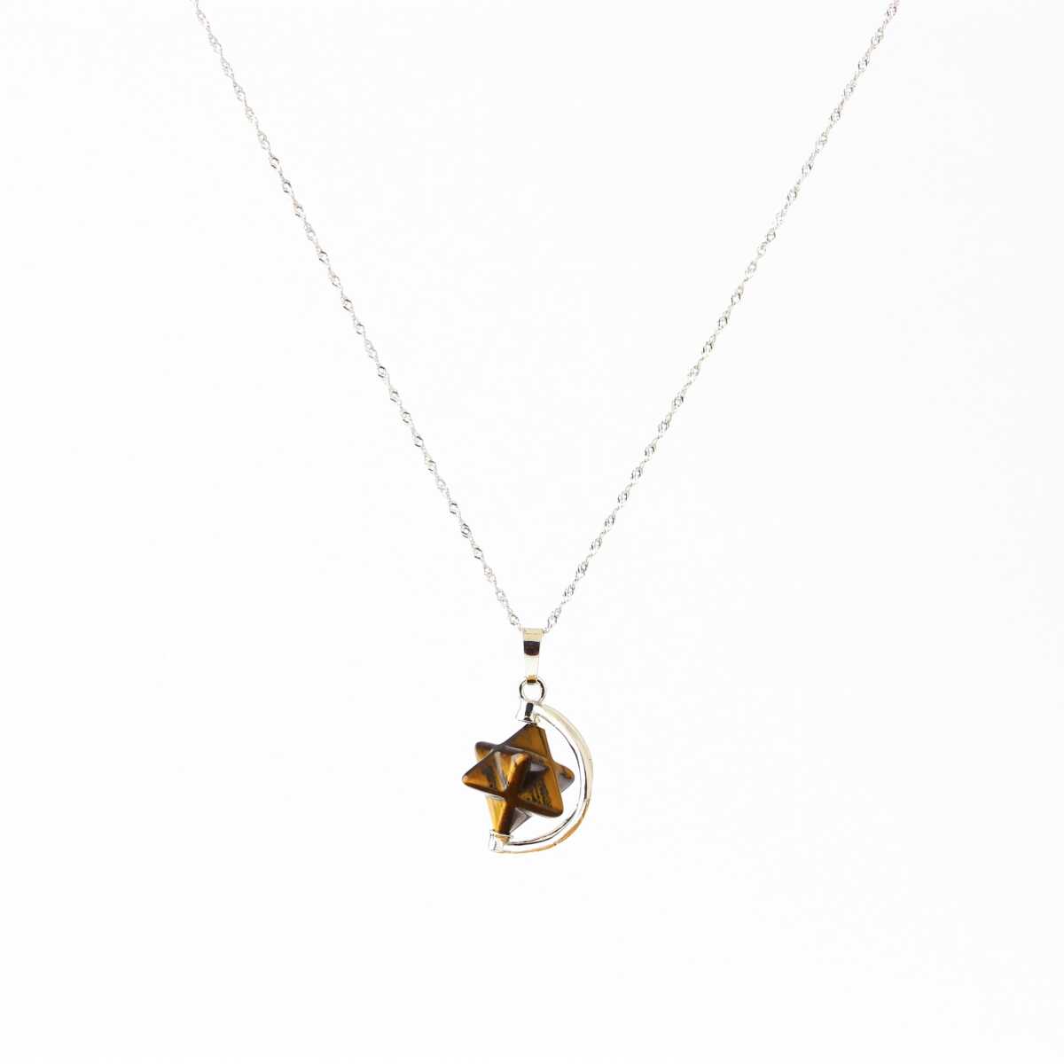 Kaplan Gözü Doğal Taş Yıldızlı Kolye, Gümüş Zincir
